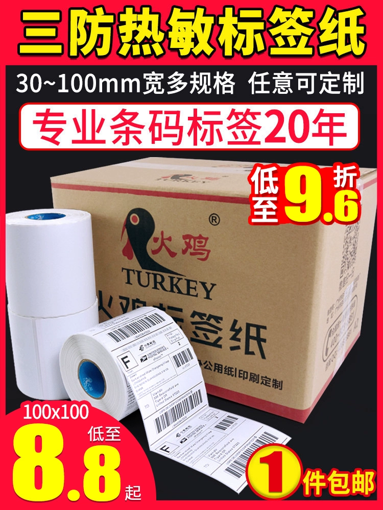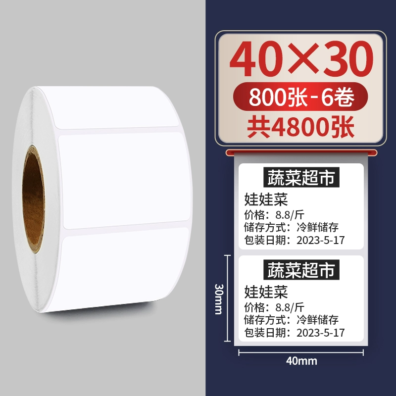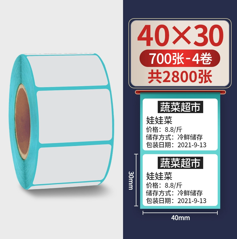 | nameOriginal | Three-proof thermal label paper 100 20 30 40 50 60 70 80 self-adhesive label printing paper blank barcode sticker clothing tag milk tea price supermarket waterproof electronic scale paper |