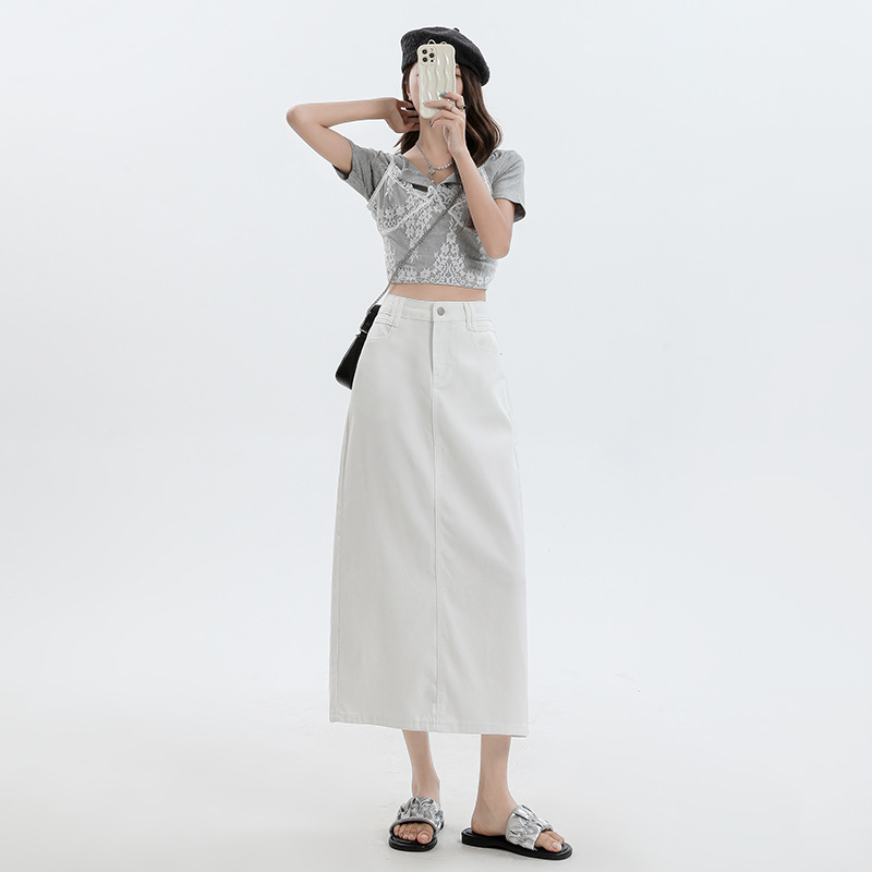 | nameOriginal | Three-proof White Tencel Denim Skirt Women's 2024 New Summer High Waist Slimming Small Aa Midi Dress |