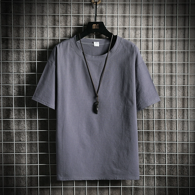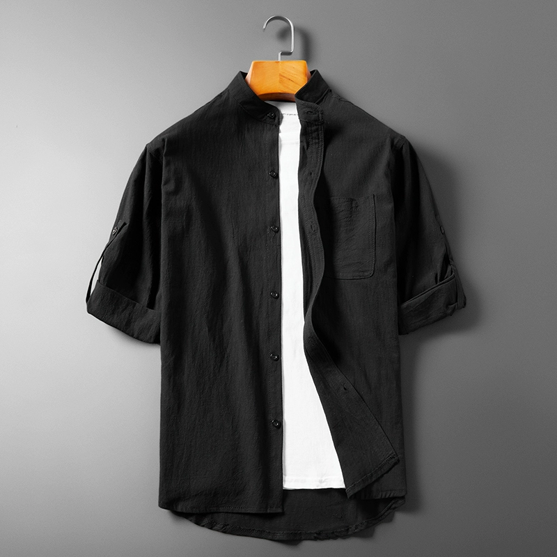 Inch shirt, seven-quarter sleeve Korean style trendy stand-up collar cotton linen shirt