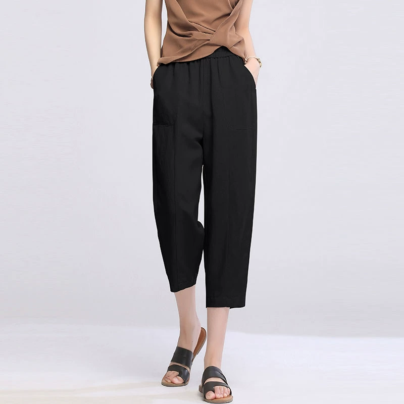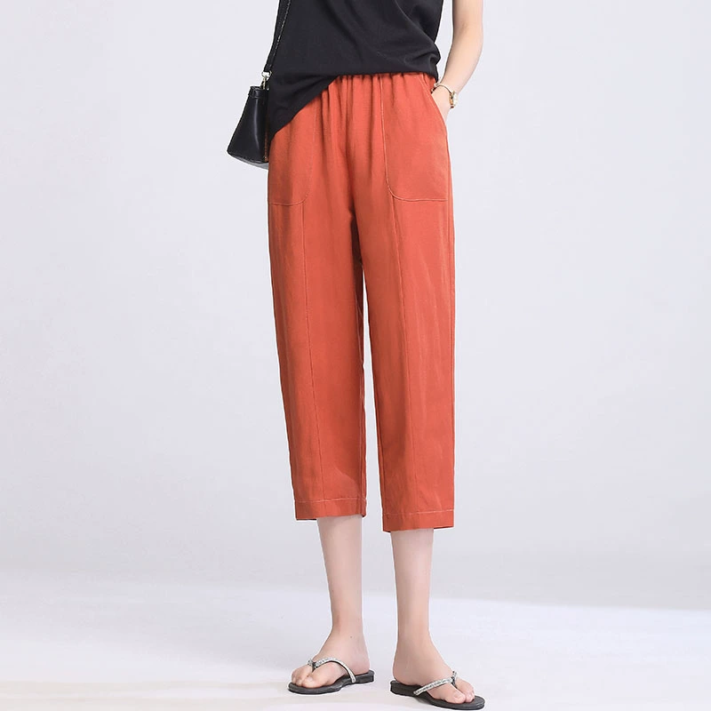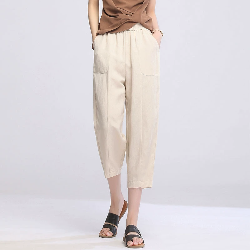 | nameOriginal | Three-quarter thin high-waisted mom casual cigarette pants linen |