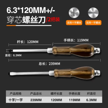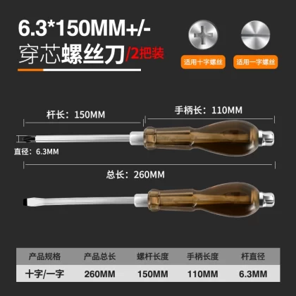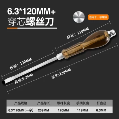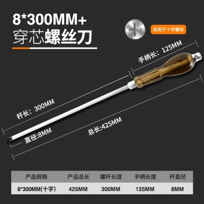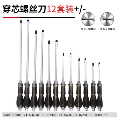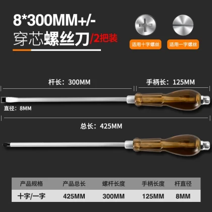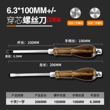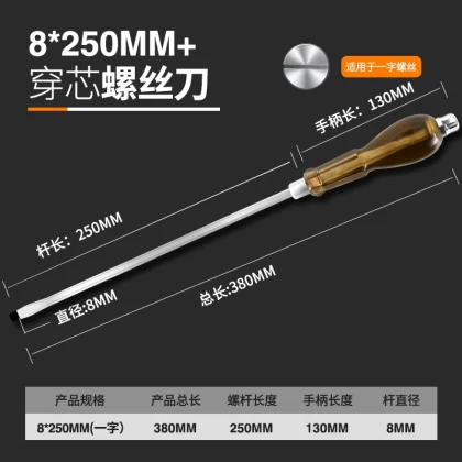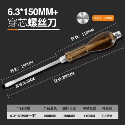 Through-hole screwdriver can knock large cross-shaped core, super-hard flat mouth, extra-large thick screwdriver
