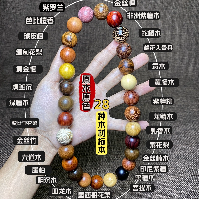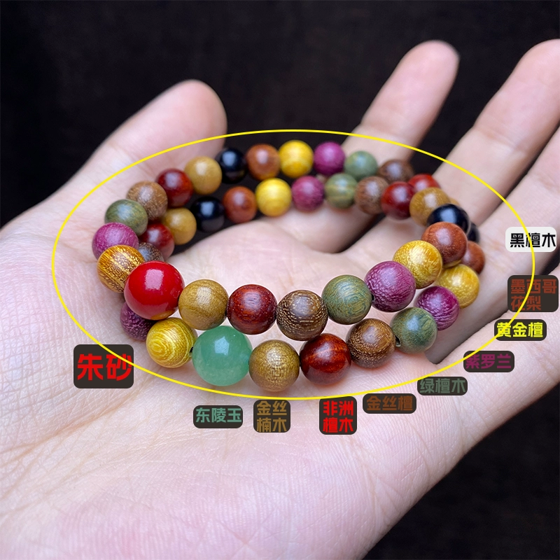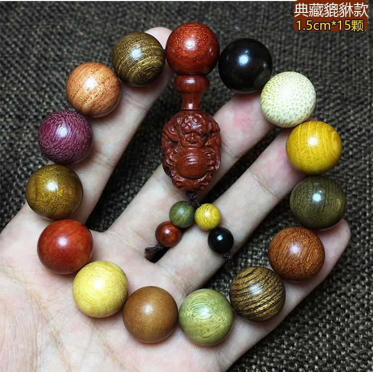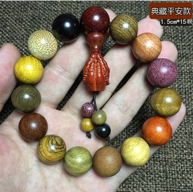Thuja, rosewood, sandalwood, golden silk, nanliudaomu, nineteen kinds of precious multi-beads to attract rice and good luck, hand-held bracelet