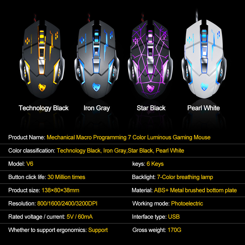 | nameOriginal | Thunderwolf V6 wired mouse mechanical game computer eSports Wrangler macro programming LOL Amazon cross-border generation |