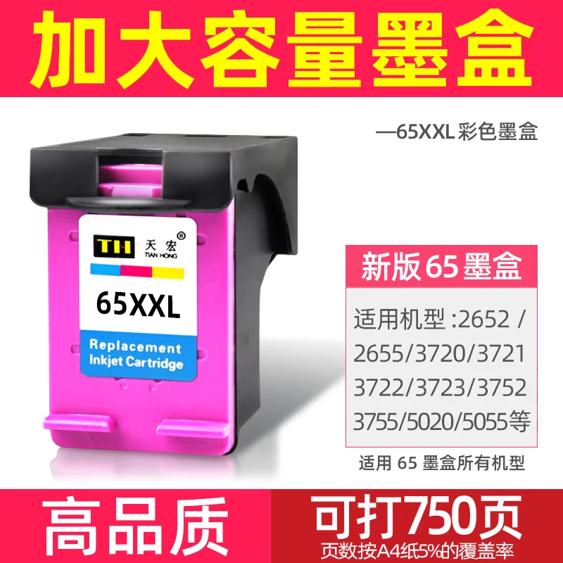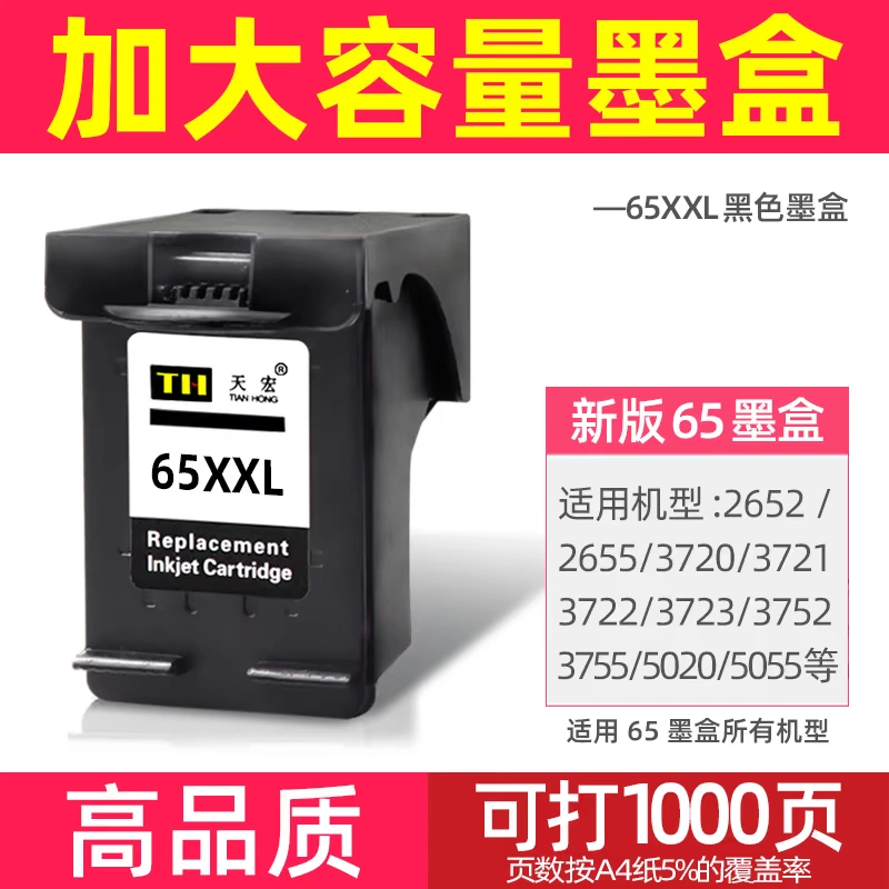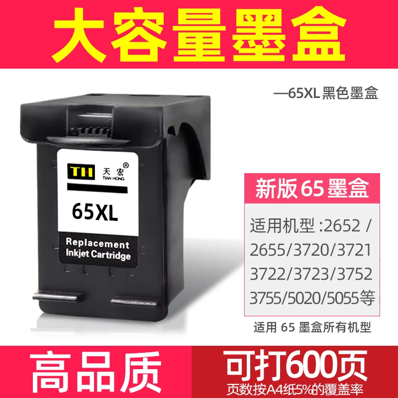 | nameOriginal | Tianhong is compatible with HP 65XL ink cartridge hp deskjet2652 2655 2620 2640 3720 3722 3723 3752 3755 5020 5055 printer easy to add ink black |