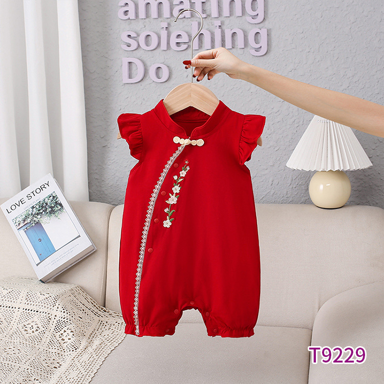 Tianjing children’s clothing 2024 summer new baby jumpsuit national style full moon baby ha clothes climbing suit
