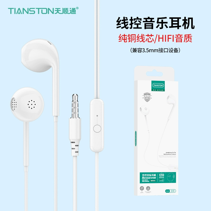 | nameOriginal | Tianshuntong E40 in-ear 3.5 round hole suitable for iPhone and Android mobile phone stereo music call headphone plug |