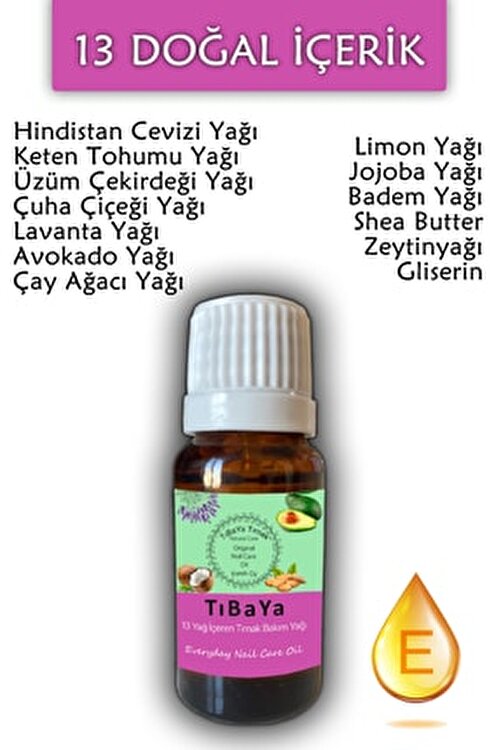 TiBAYA Nail Care Oil 10 ml “13 Oil Containing Nail Care Oil” Contents:Lavender oil, coconut oil, linseed oil, sweet almond oil, olive oil, jojoba oil, tea tree oil, lemon oil, avocado oil, grape seed oil, shea butter oil, primrose oil, glycerin oil. Usage: You can apply it to both hand and toenails 2 times a day. GramA:10ml TETT: New dated product shipment is always carried out. Product Owner:Mrs. Shop