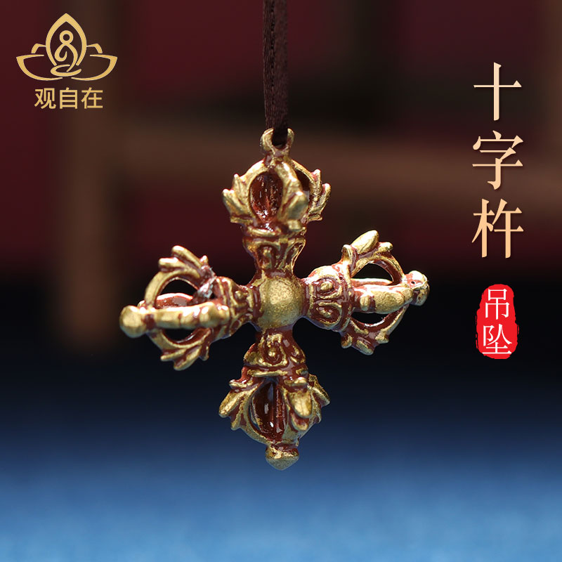 Tibetan cross vajra pestle copper unique souvenir pendant for men and women couple pendant five-strand pestle antique necklace