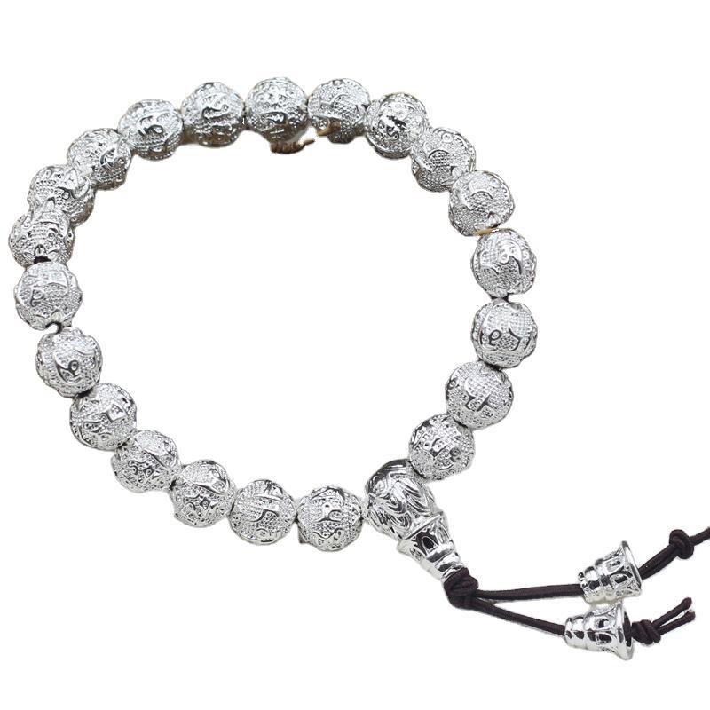 | nameOriginal | Tibetan silver six-character mantra round bead bracelet Tibetan 8mm single ring bracelet bright silver six-character jewelry wholesale bracelet alloy |