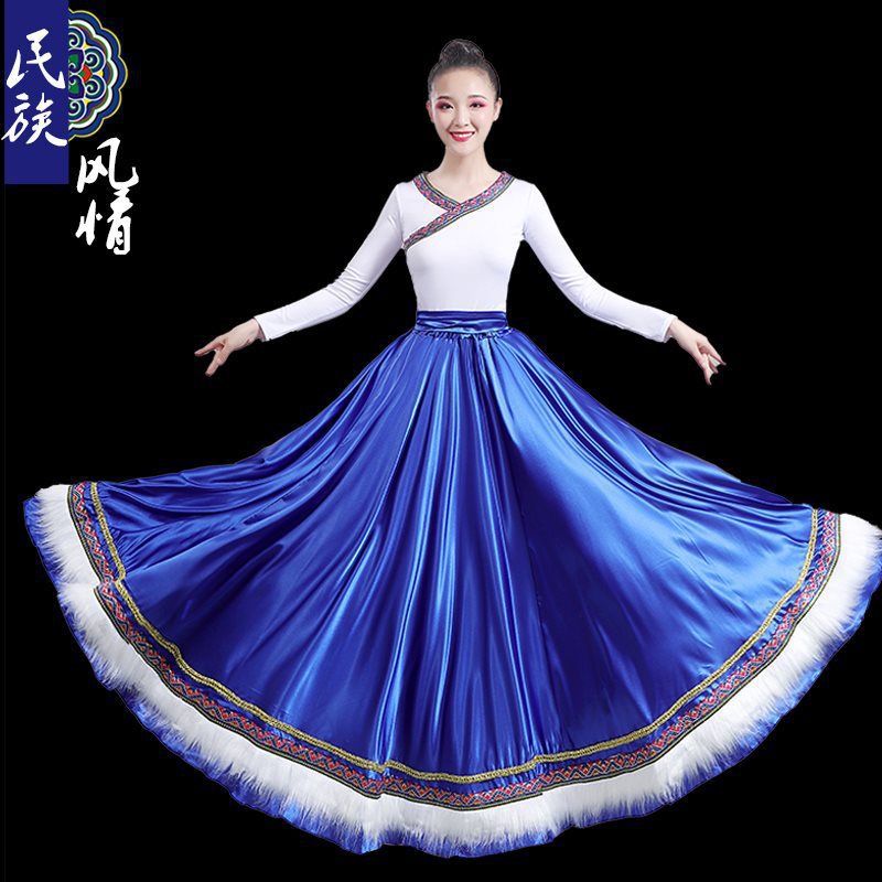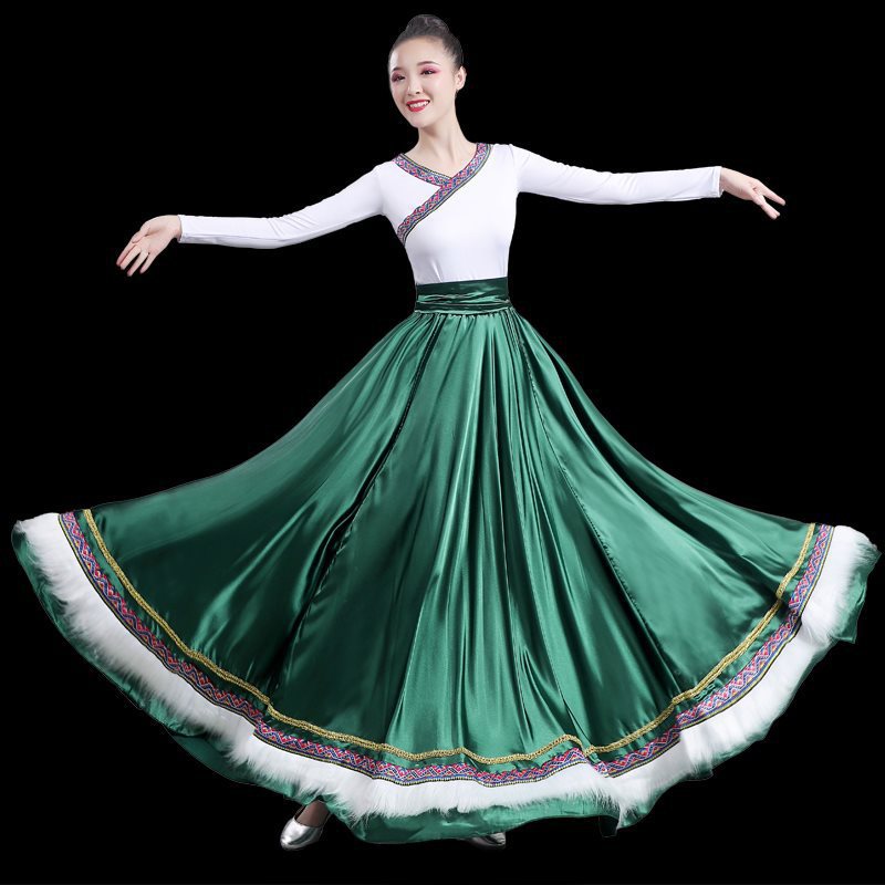 Tibetan Square Dance Performance Dress Women's Ethnic Skirt Dancing Tibetan Style Practice Skirt New Style Art Test Big Swing Skirt