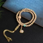 Tibetan style two-circle passion seed wooden bracelet with handle chain for women, small size mini jewelry with white jade rabbit pendant