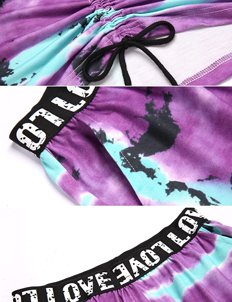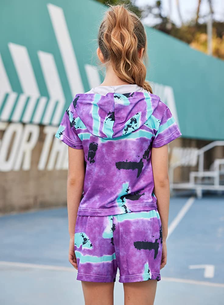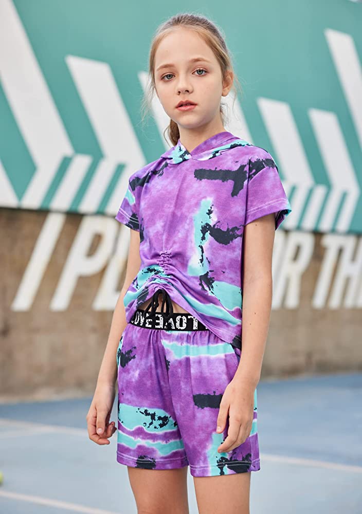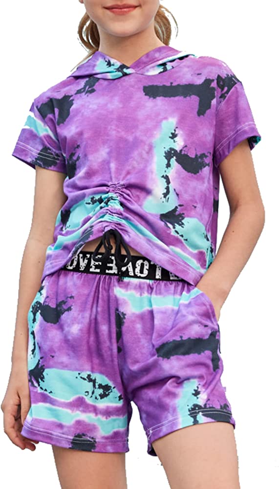 | nameOriginal | Hopeac Girls 2 Piece Outfits Tie Dye Shirt Shorts Set Short Sleeve Hoodie Drawstring Summer Clothes with Pockets |
