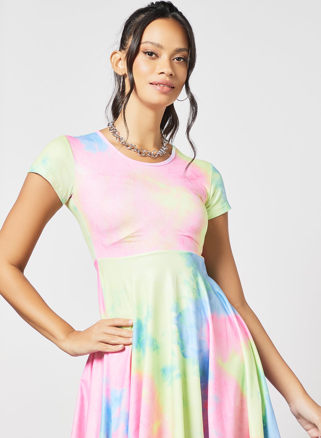 | nameOriginal | Casual Tie Dye Print Short Sleeve Midi Kint Dress Tie Dye Print 1 |