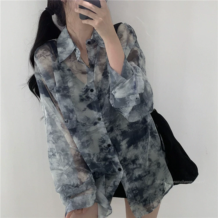 Dye niche long sleeves retro loose thin shirt