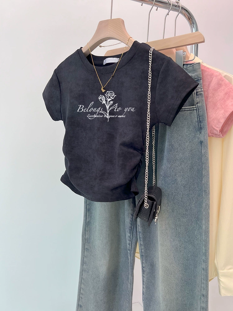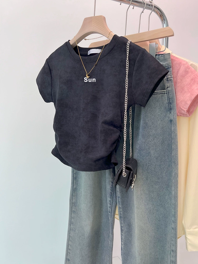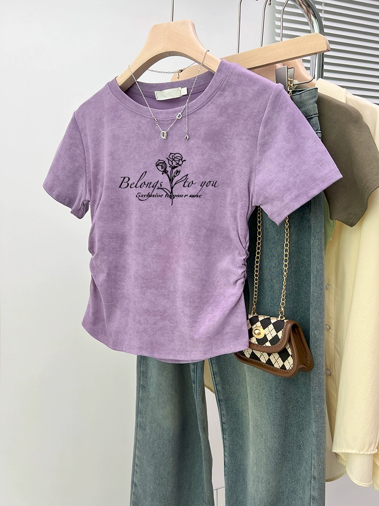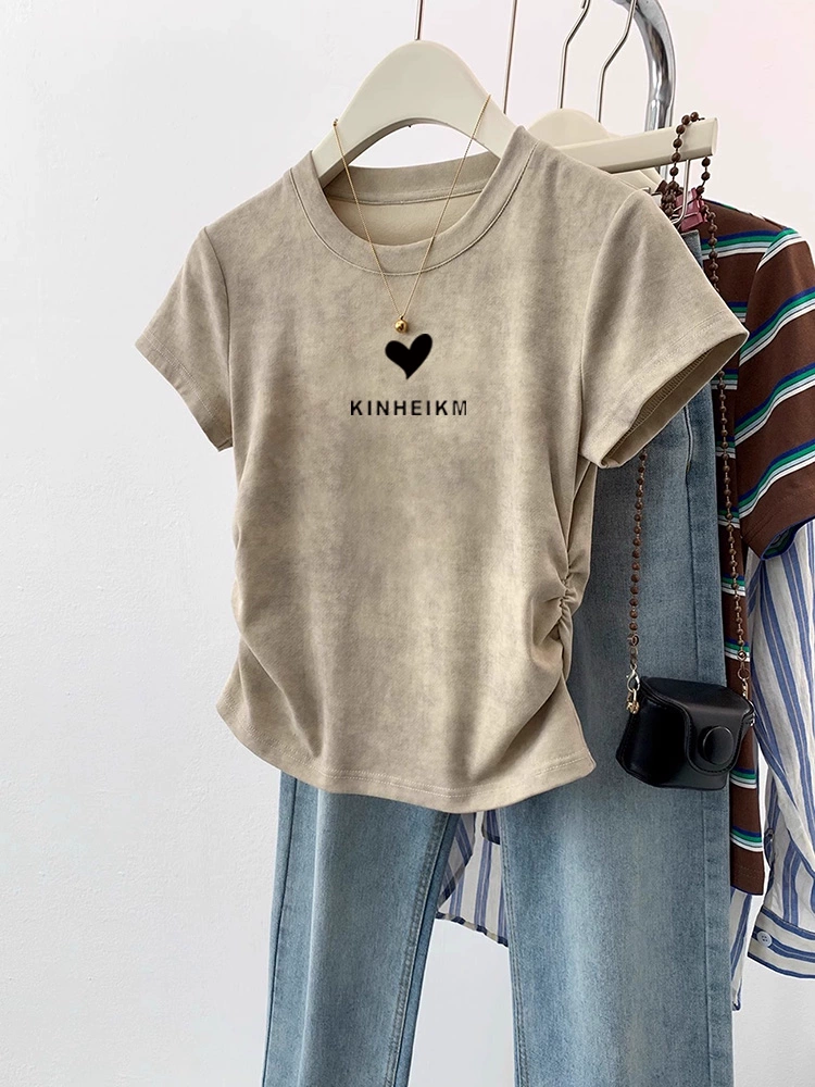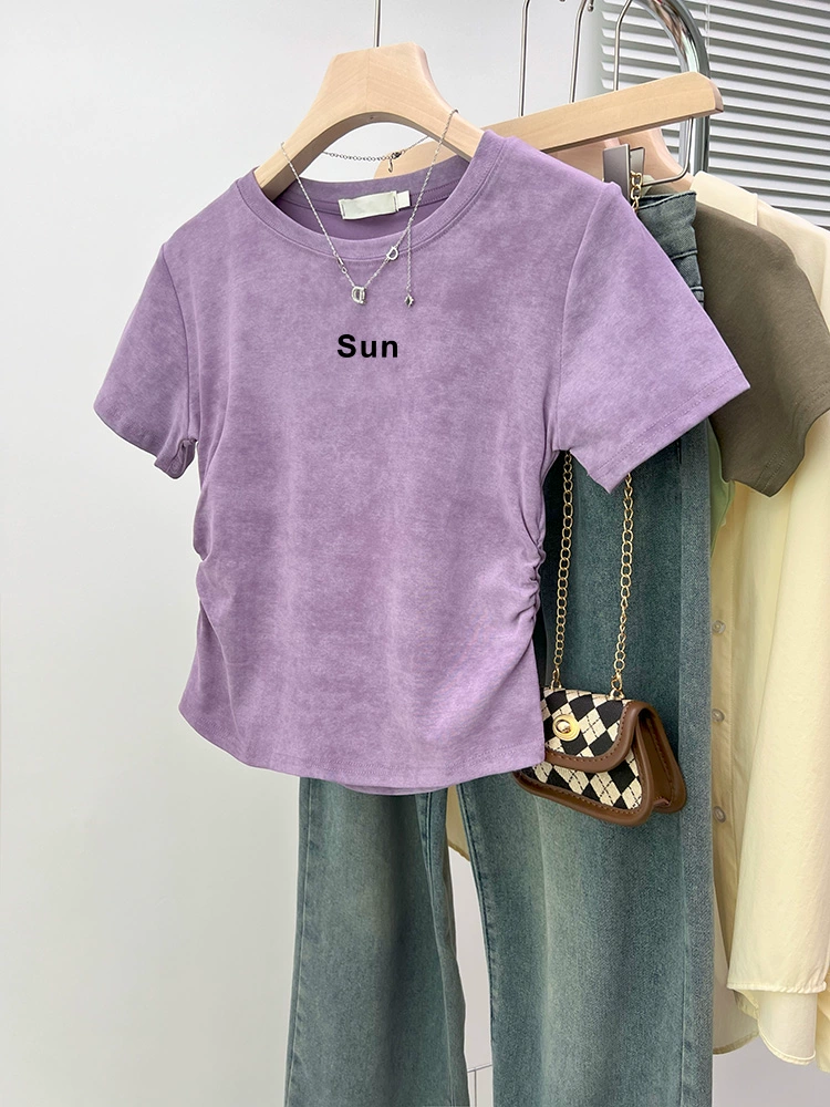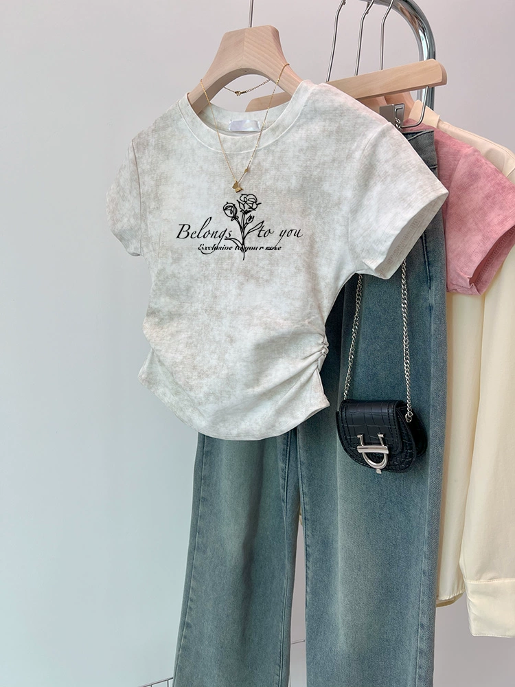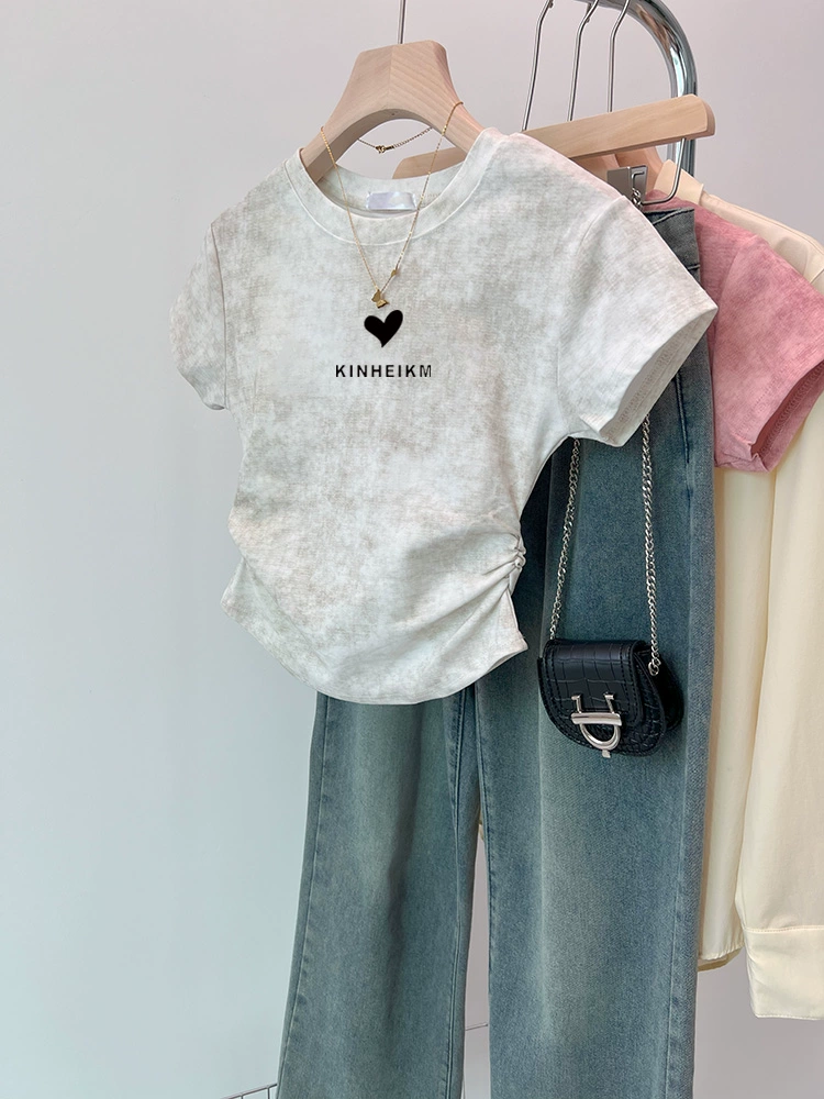 | nameOriginal | Tie-dye slim fit waisted short-sleeved 2024 new style top |