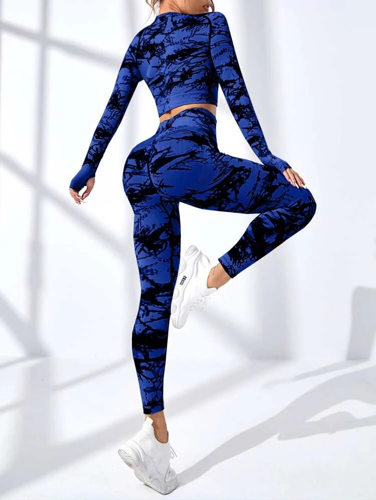 | nameOriginal | 2pcs Seamless Tie Dye Fitness Yoga Suit Gym Outfits Set Raglan Sleeve Sports Tee Wide Waistband Tights |