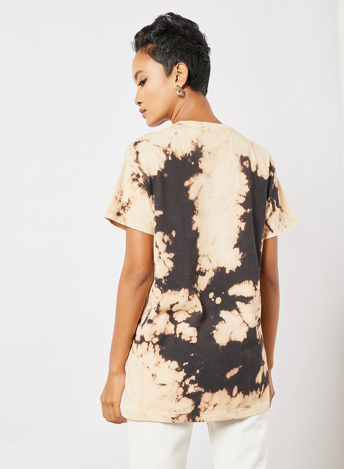 This product boasts a fabric that is both soft and comfortable to wear. It features a trendy tie-dye design that covers the entire garment. The crew neck and short sleeves provide a classic look, while the comfortable, regular fit ensures a relaxed feel. To maintain the quality of the product, it is recommended to follow the care label instructions when washing. The model pictured is approximately 175cm tall and is wearing a size S.