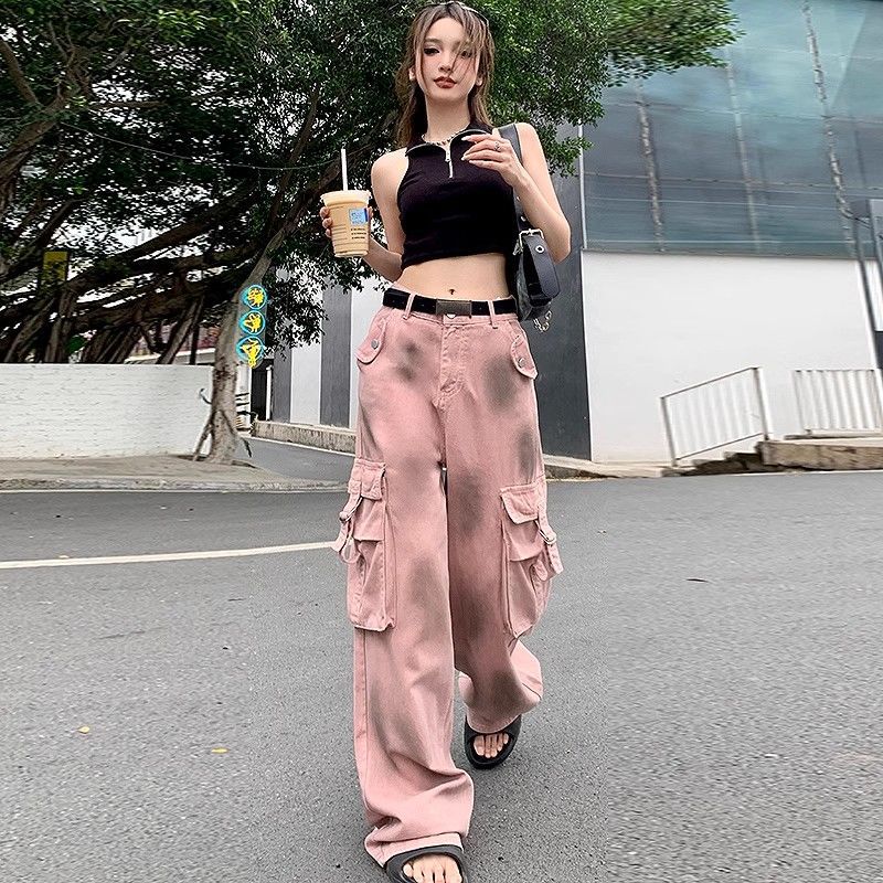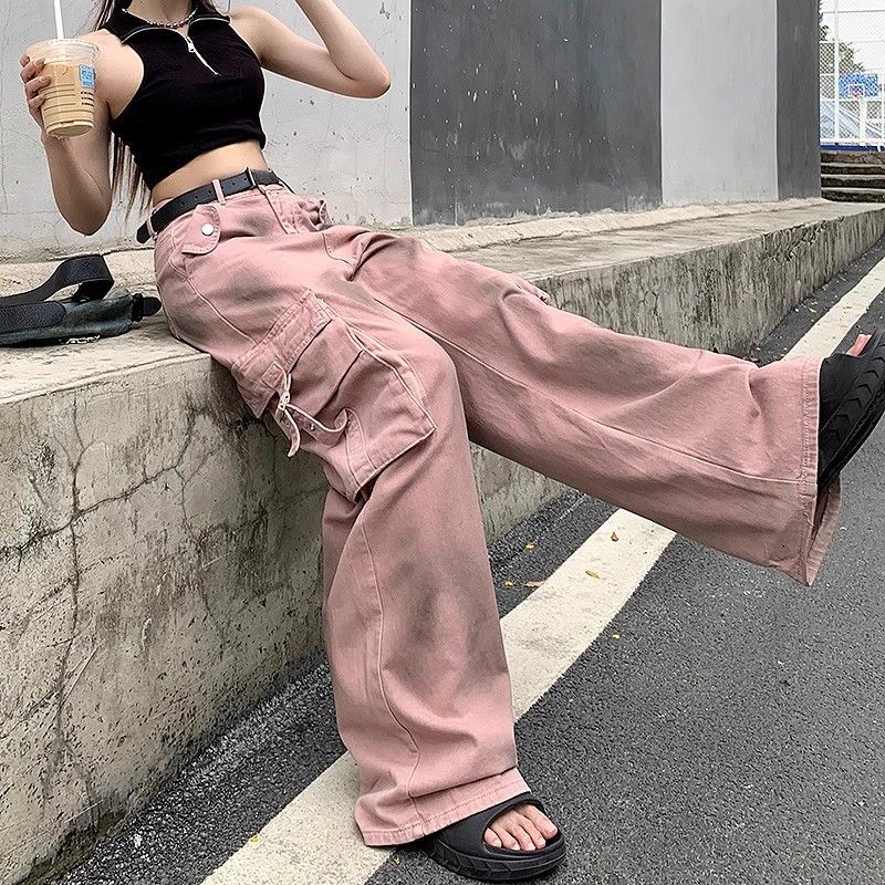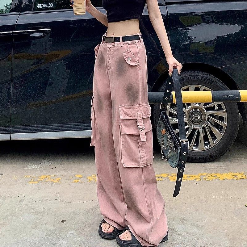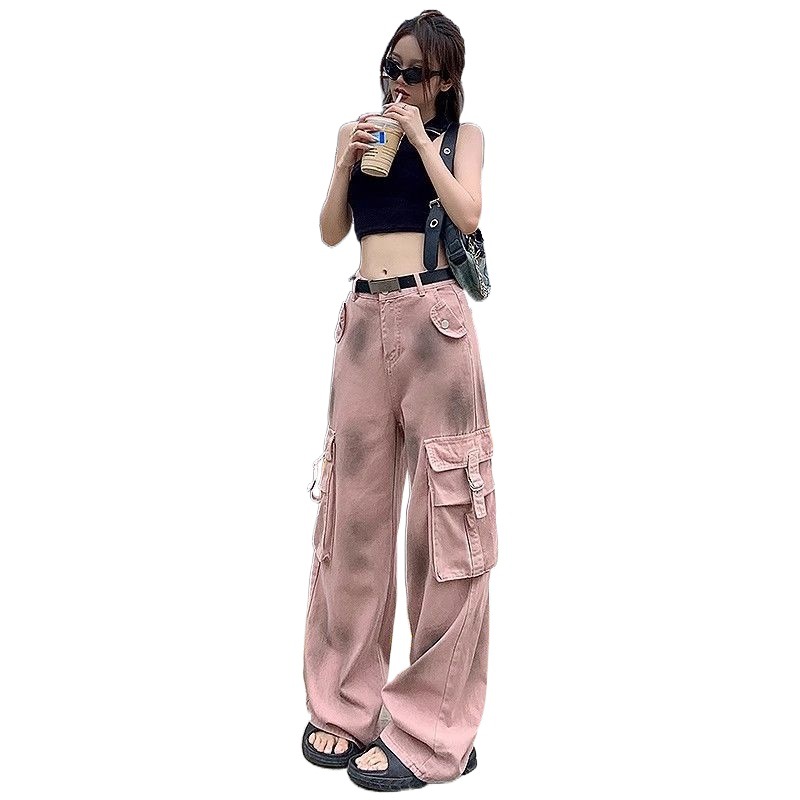 | nameOriginal | Tie-dyed American-style Tooling Jeans Wide-leg Loose 2024 Slimming Summer New High Waist Straight Tube |