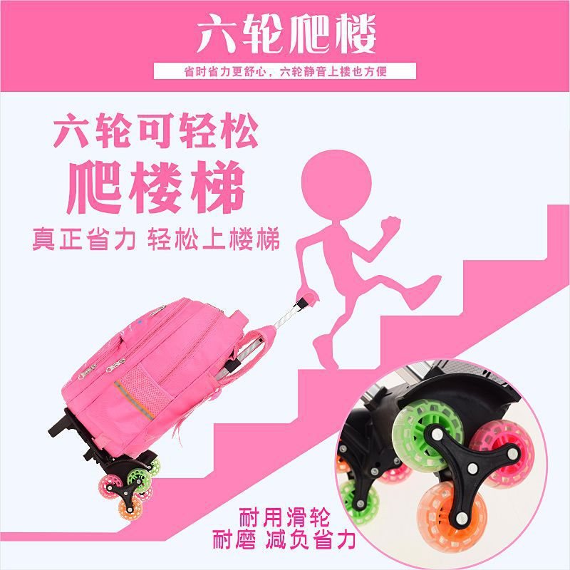 | nameOriginal | Tie-rod schoolbag girls primary school students cute six-wheel stair climbing grade 1-3-6 girls hand push factory wholesale |