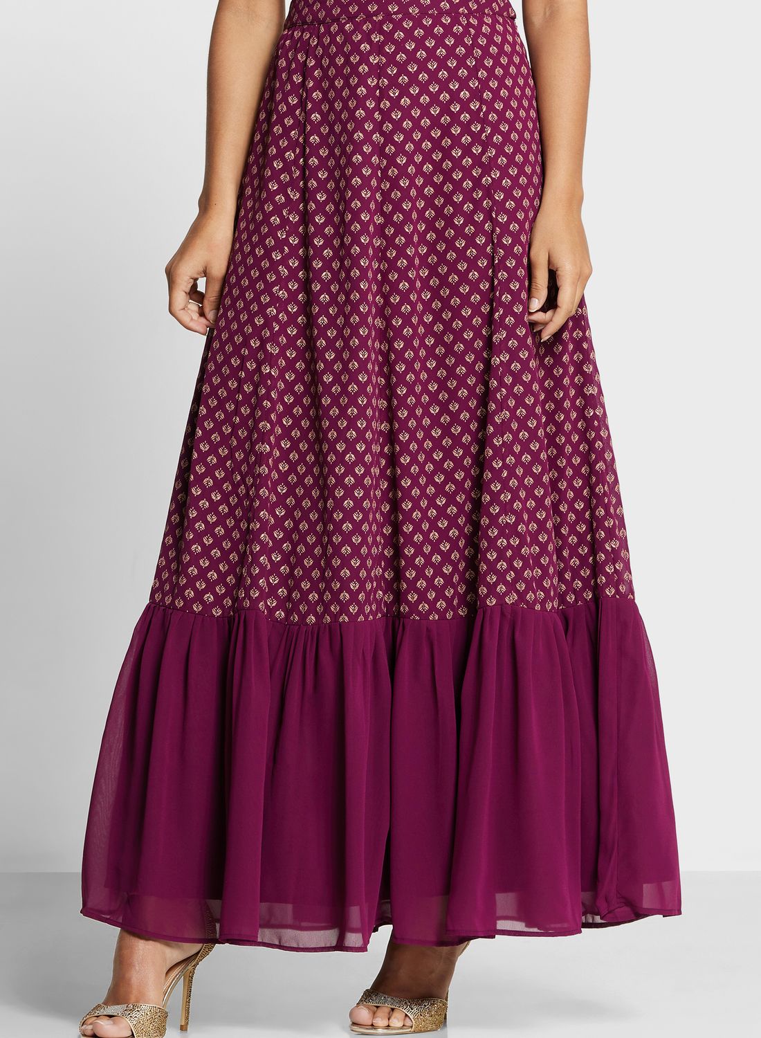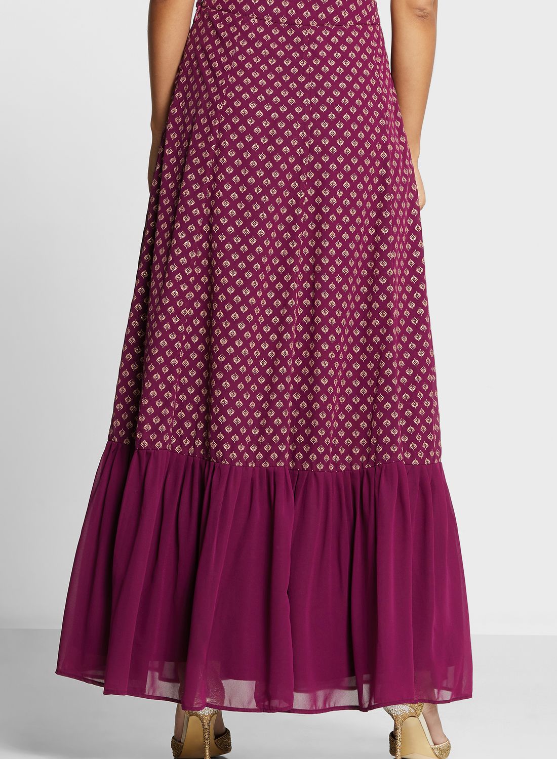 | nameOriginal | Floral Foil Print Tiered Lehenga |