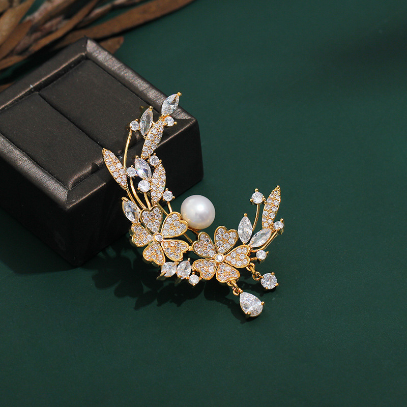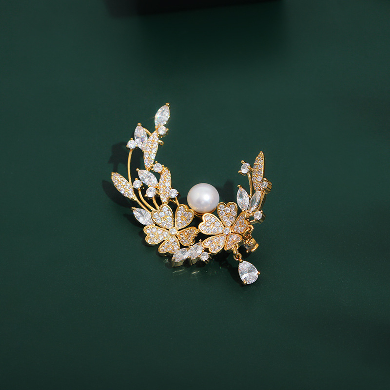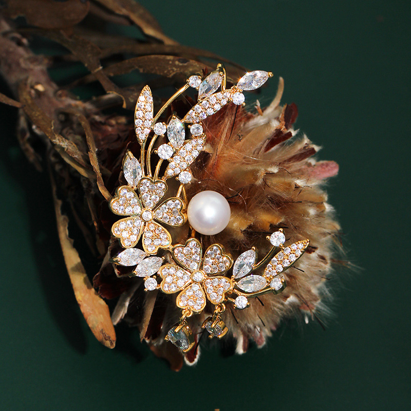 | nameOriginal | Tifanke New Pearl zircon Laurel brooch Clover Daisy fashion real gold fashion European and American retro South Korea |