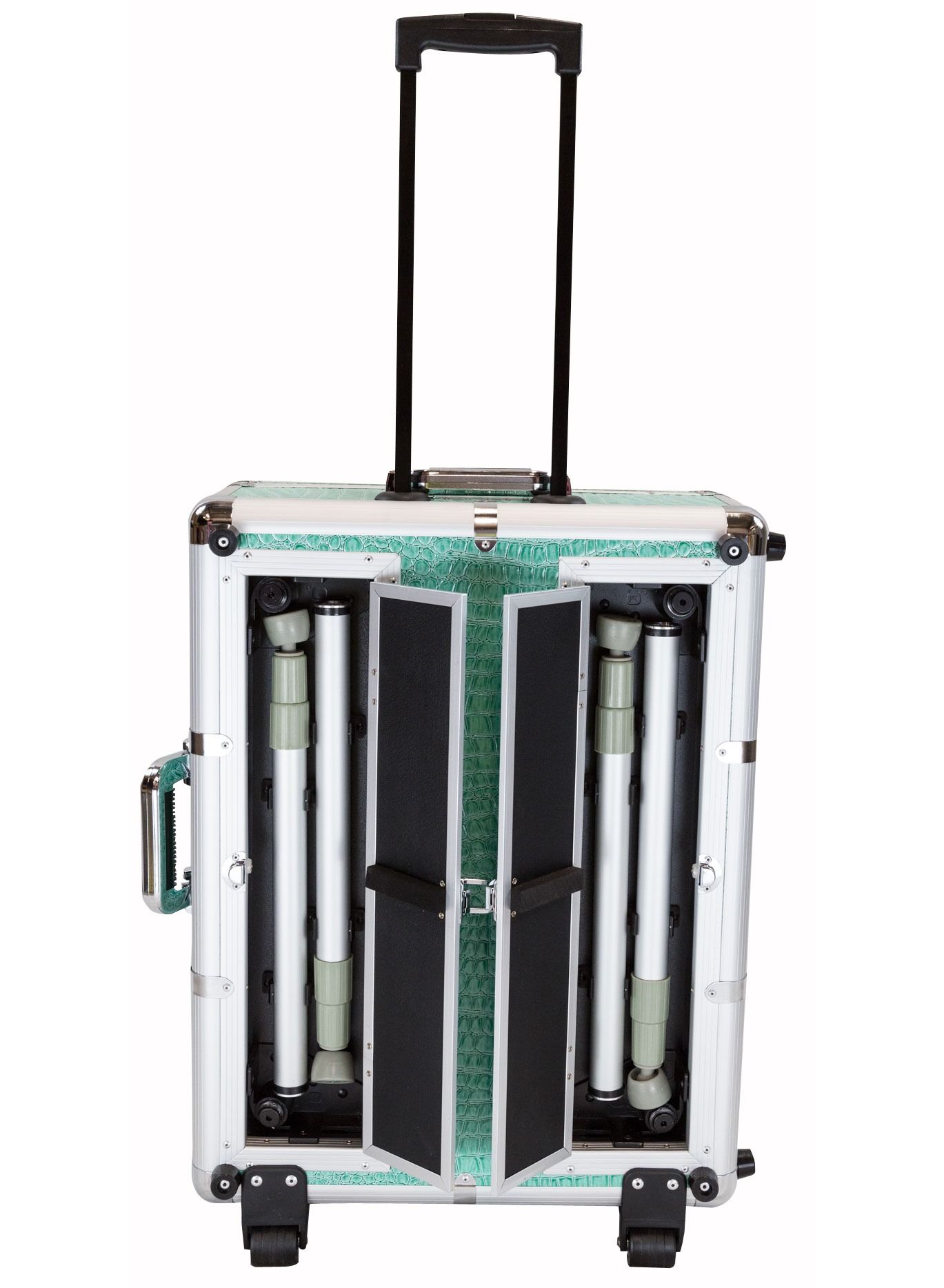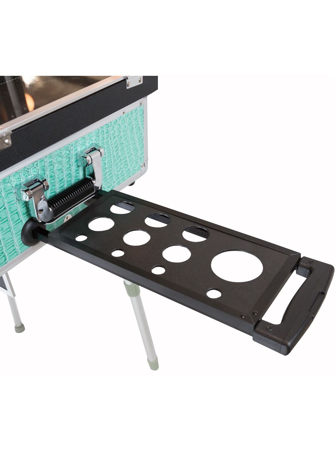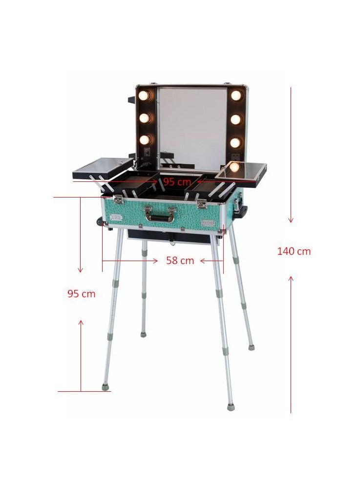 The Makeup Train Stand Case with Pro Studio Artist Trolley and Lights Tiffany is the ultimate solution for professional makeup artists who need to transport their makeup supplies with ease. This product features a spacious train case with multiple compartments to store all your makeup essentials, including brushes, palettes, and tools. The train case is designed to stand upright, making it easy to access your makeup while you work.