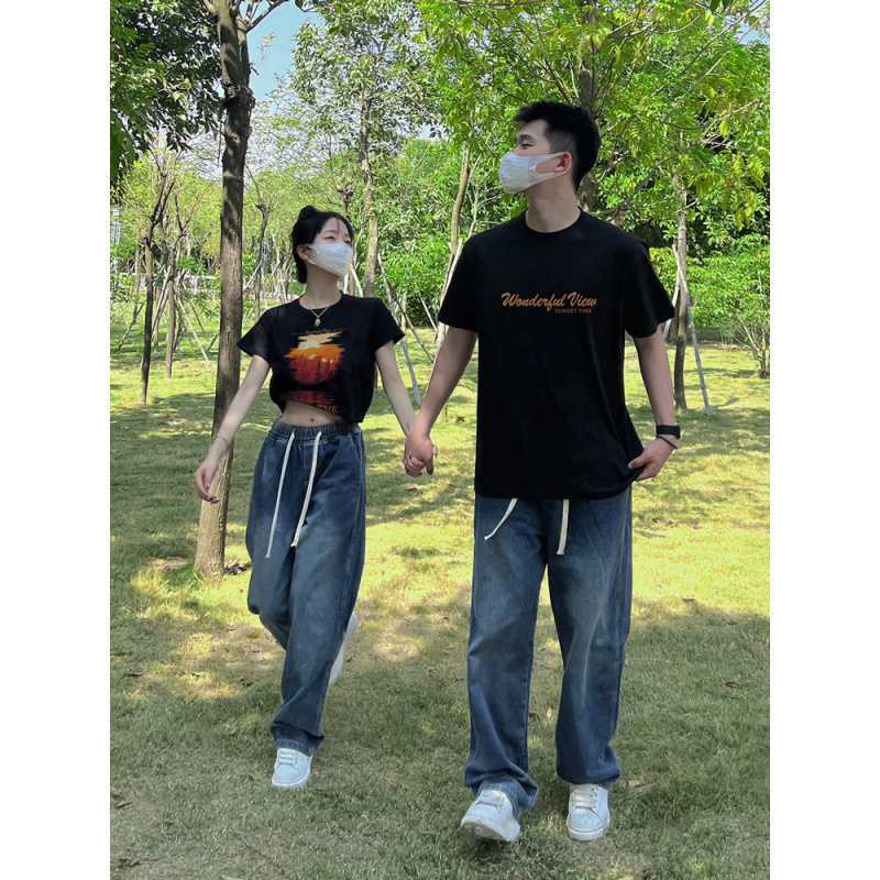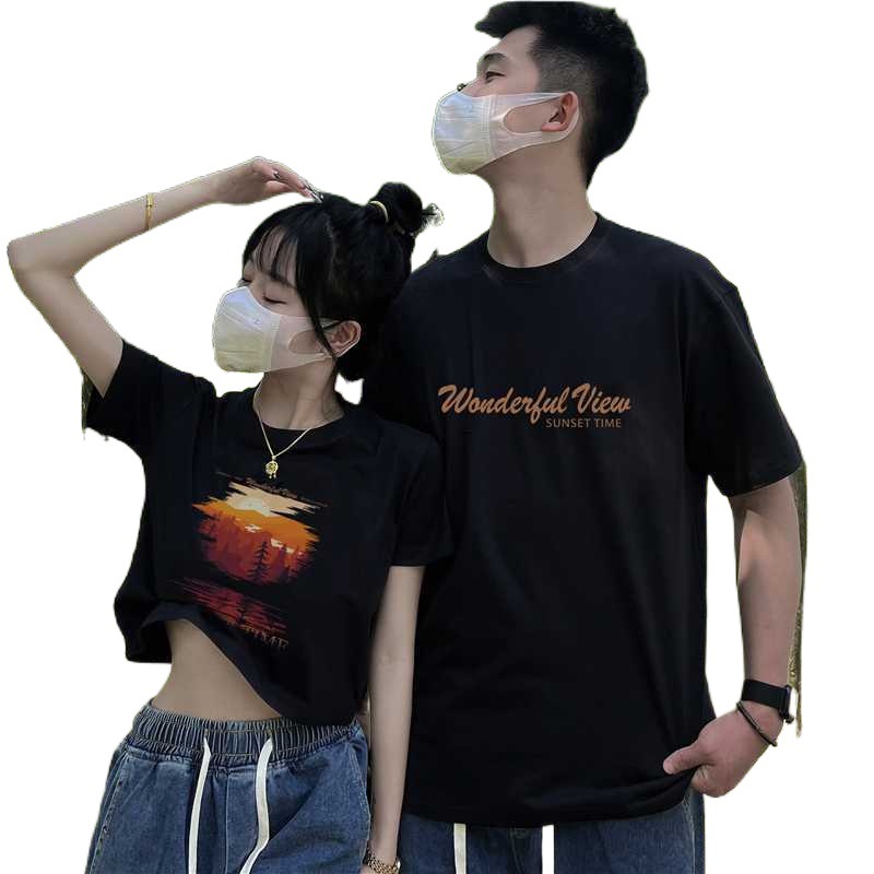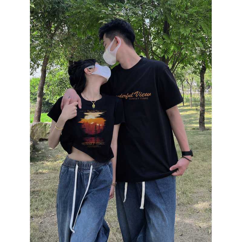 | nameOriginal | Tight Cotton Couples Wear# One Long and One Short Men's and Women's Short Top Loose Fashionable |