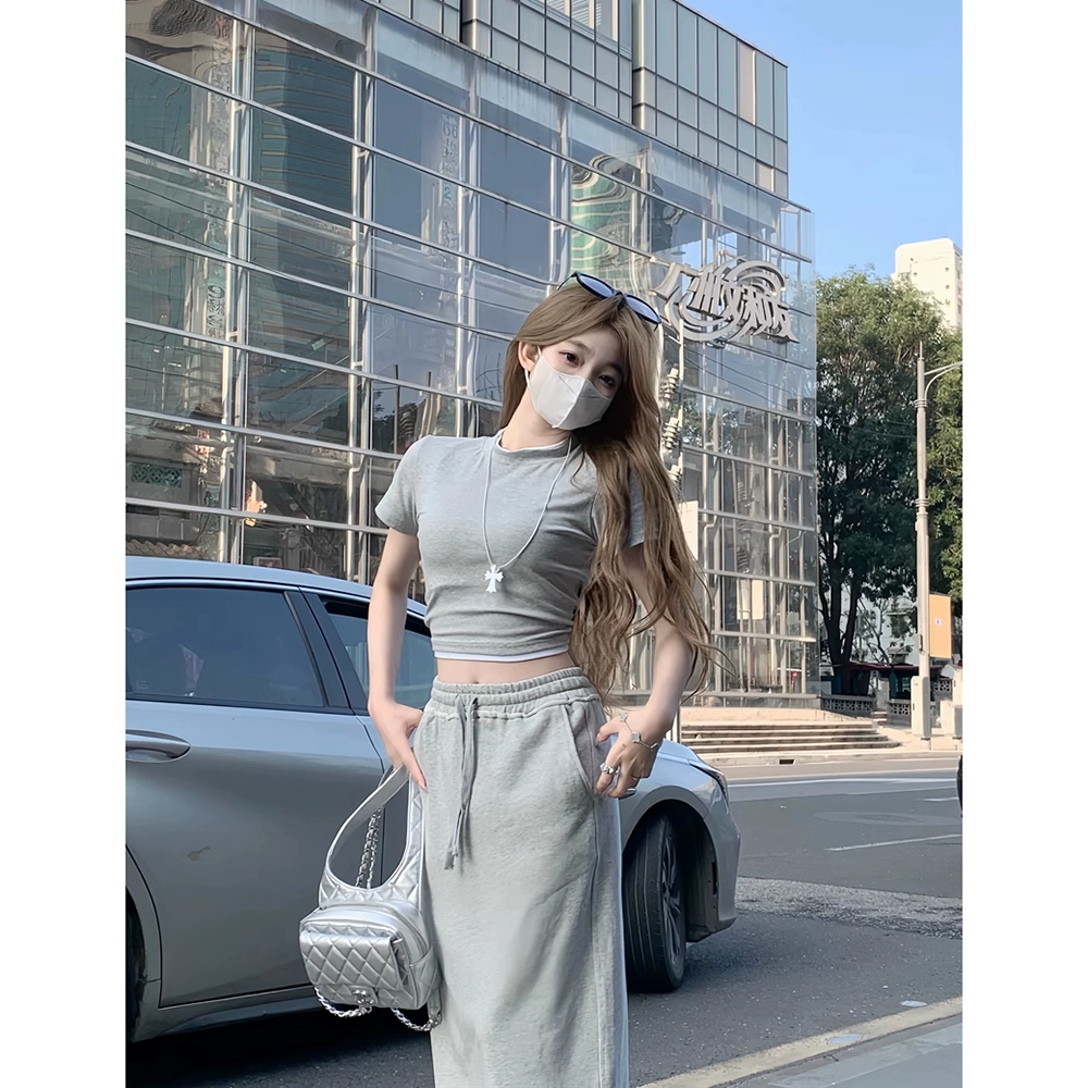 | nameOriginal | Tight-fitting short-sleeved T-shirt drawstring rolled high-waist fake two-piece |