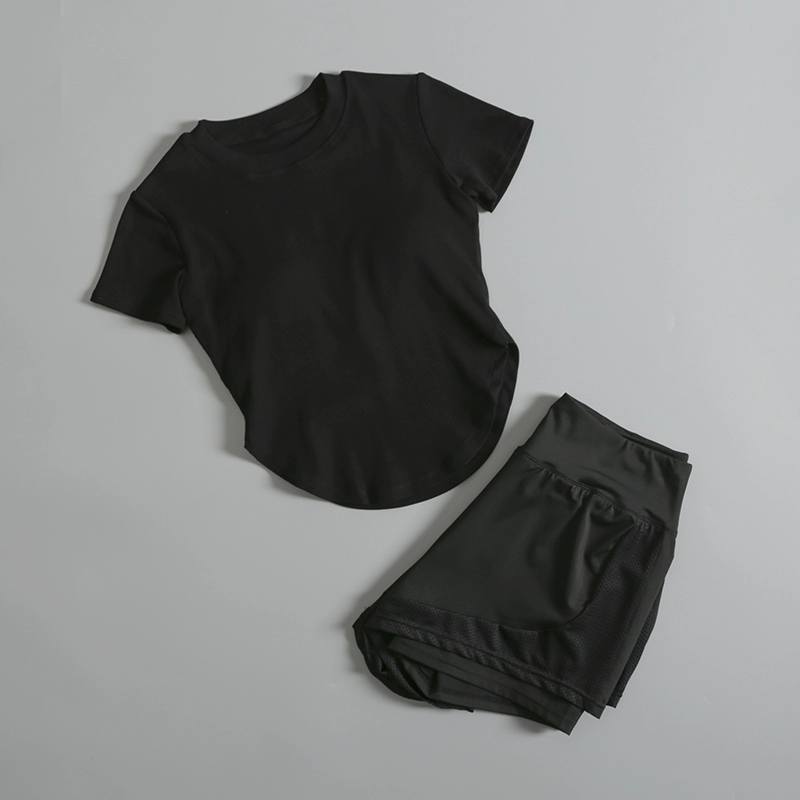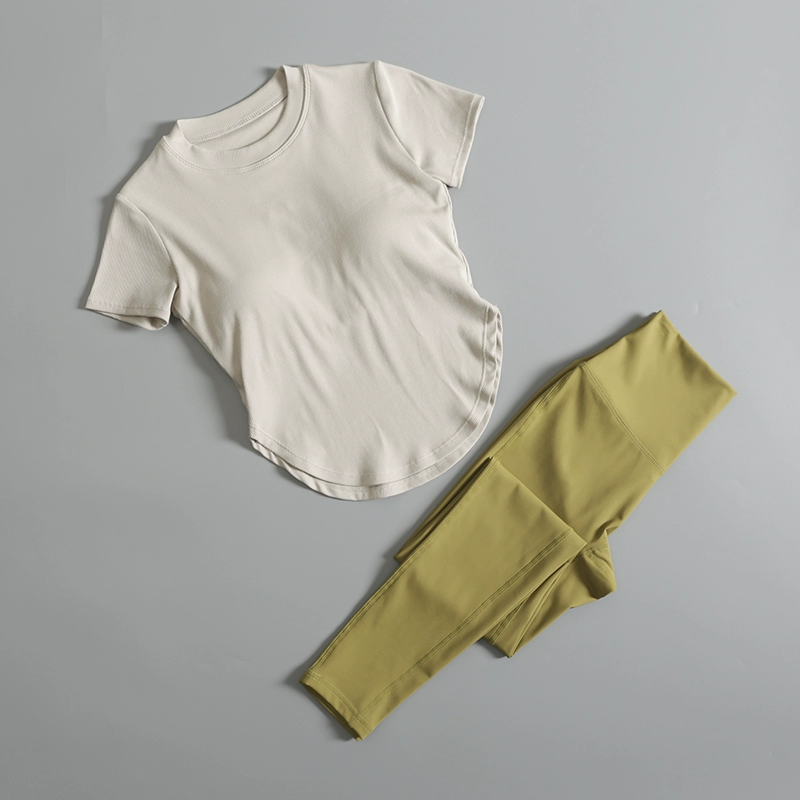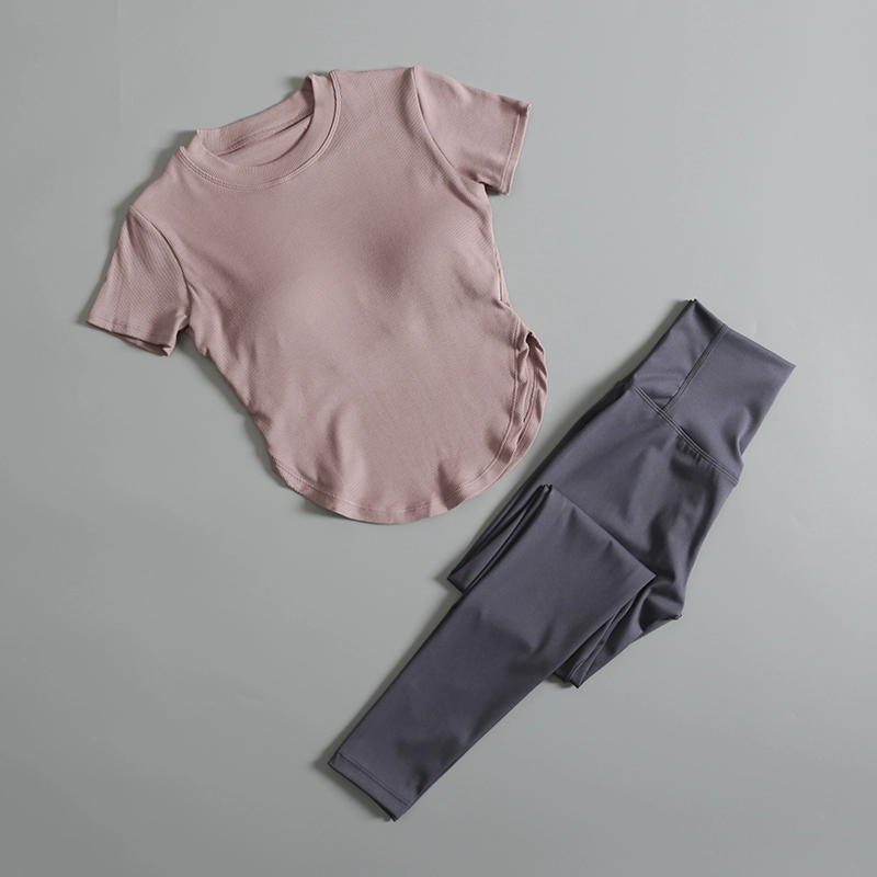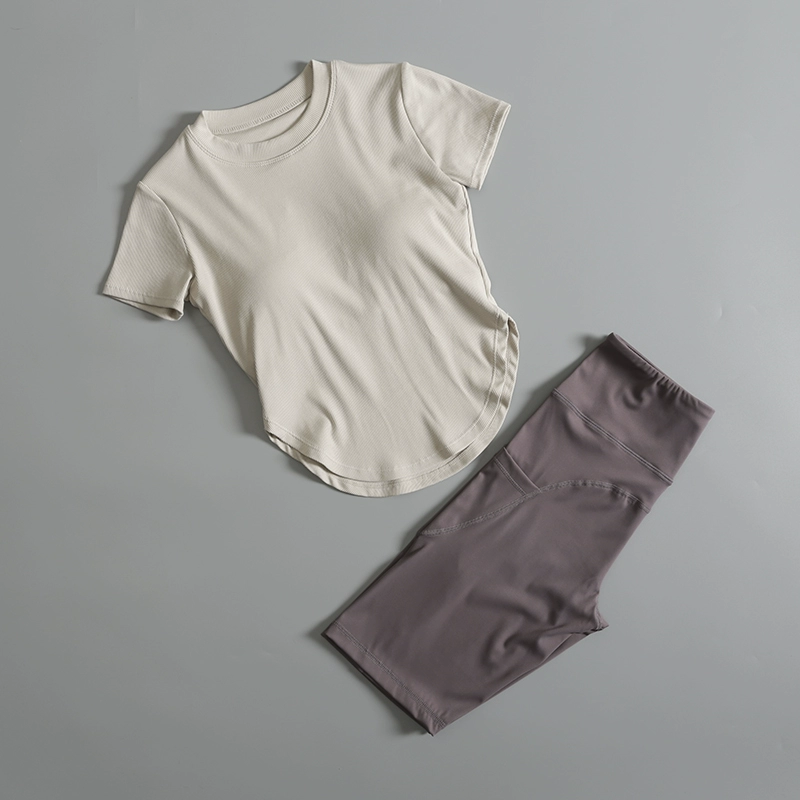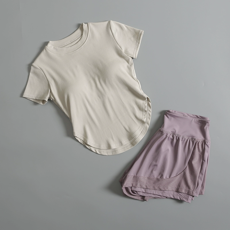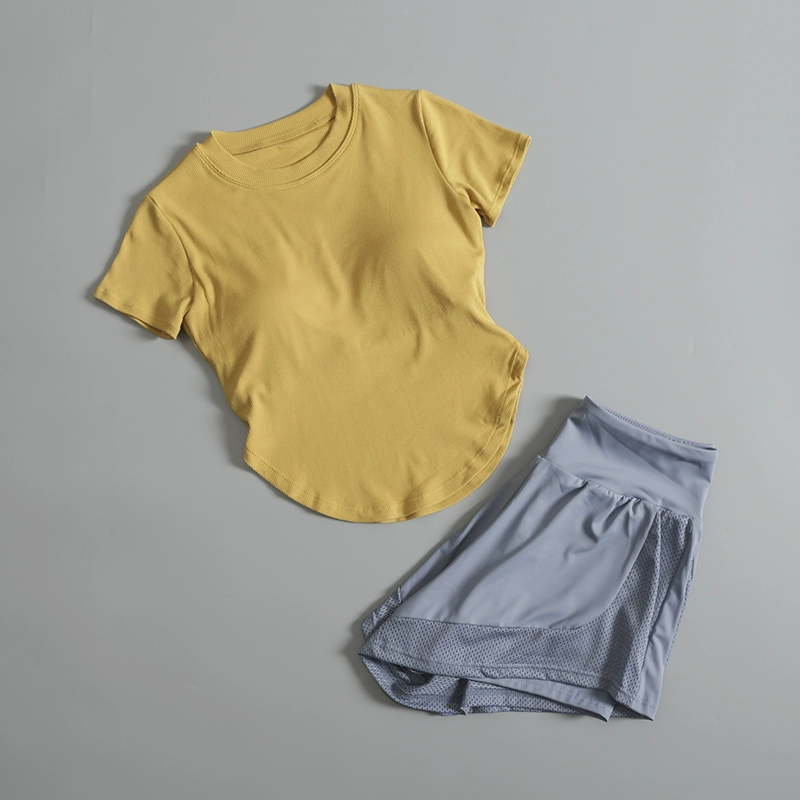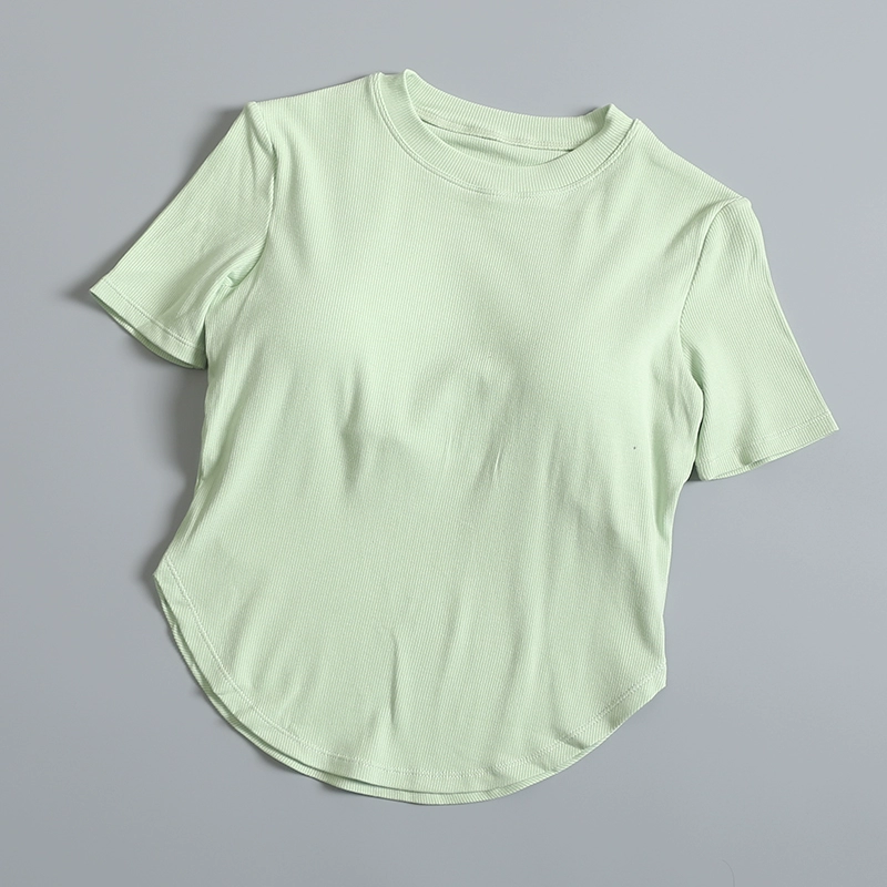 Tight-fitting slimming short-sleeved women’s sports T-shirt with chest pad