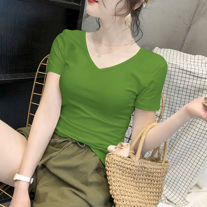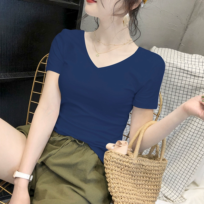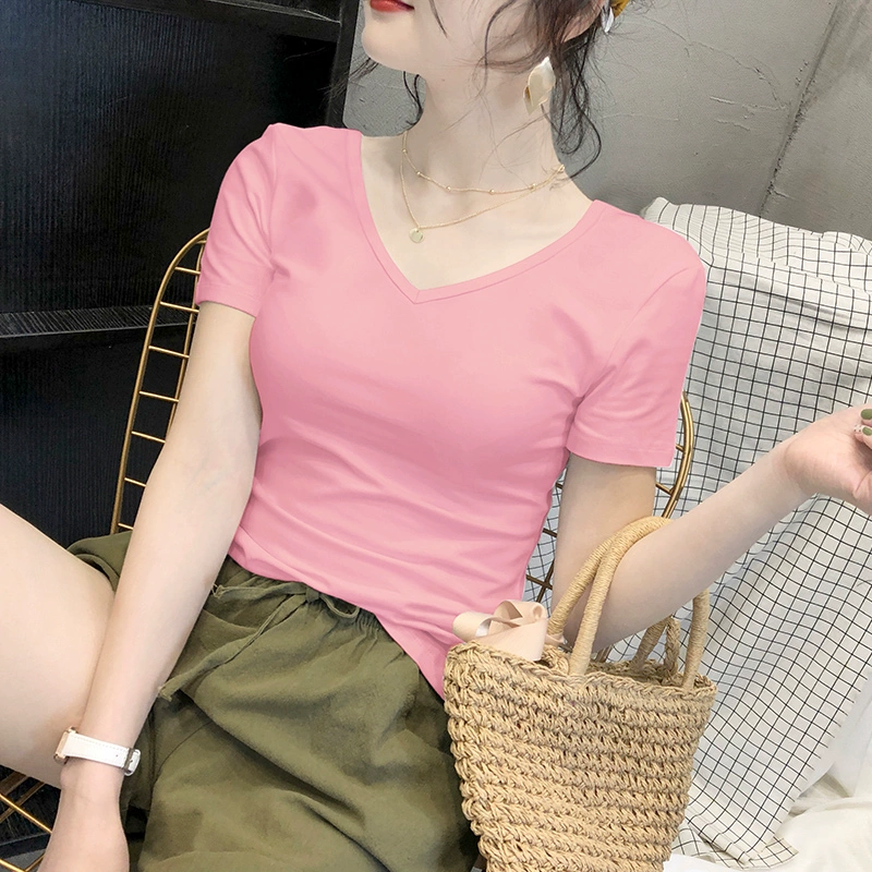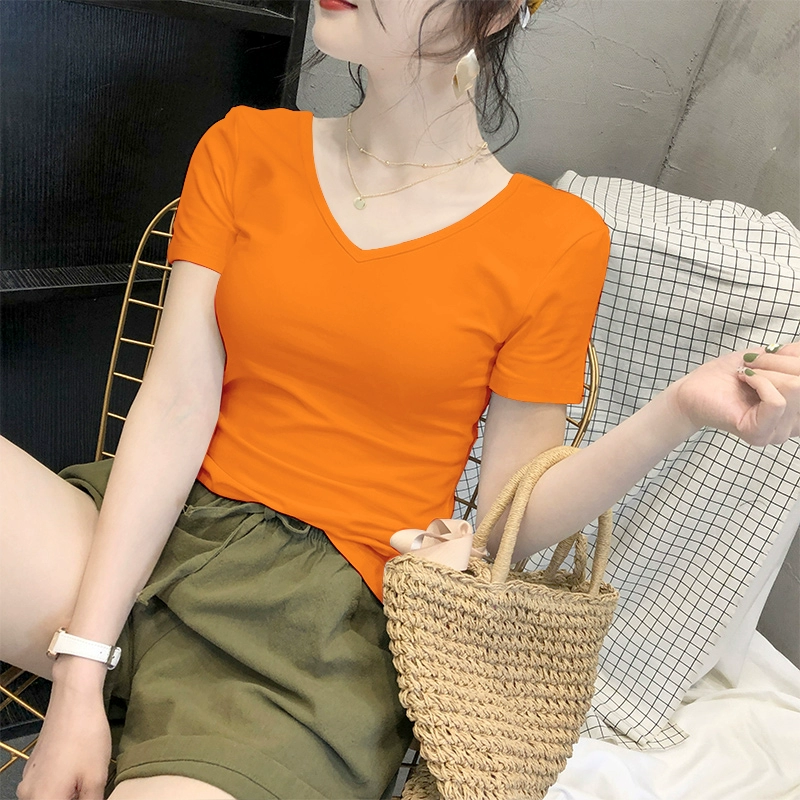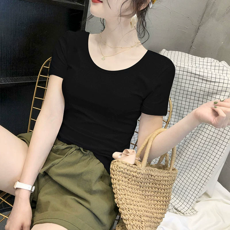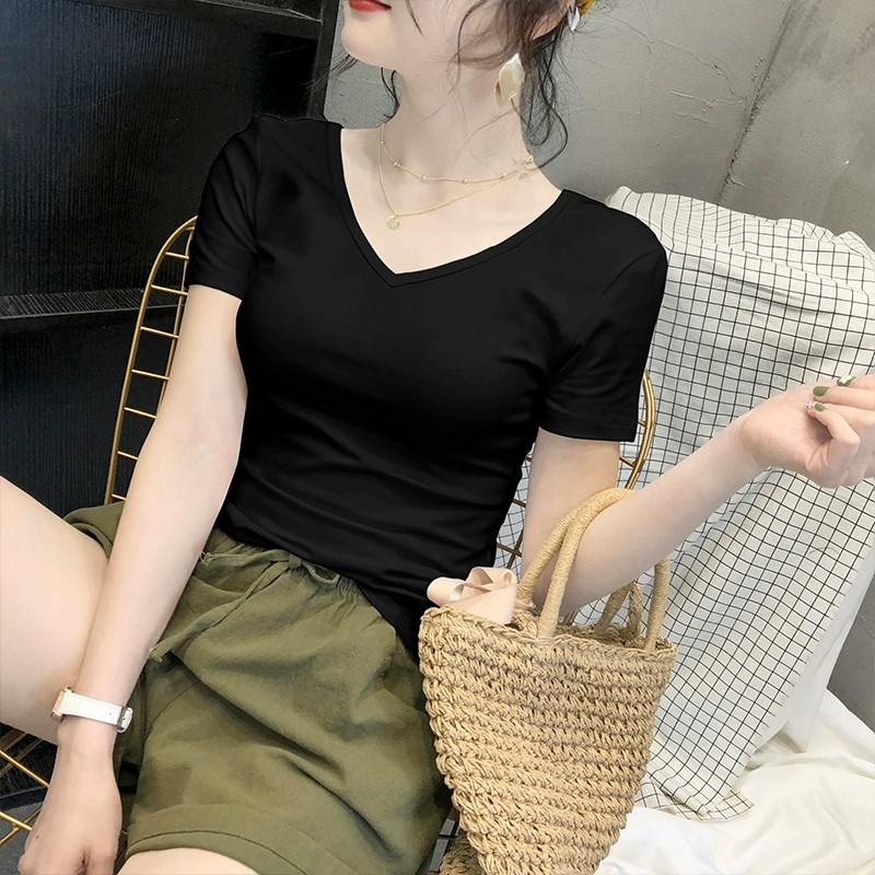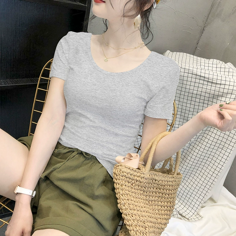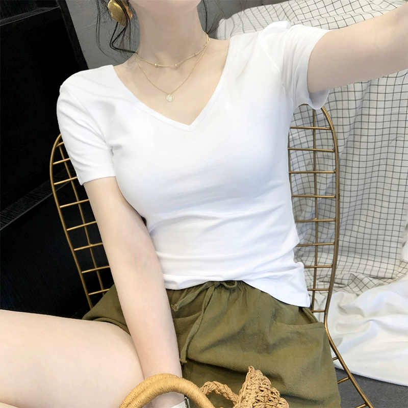 | nameOriginal | Tight sweetheart neck half sleeve top white t-shirt |