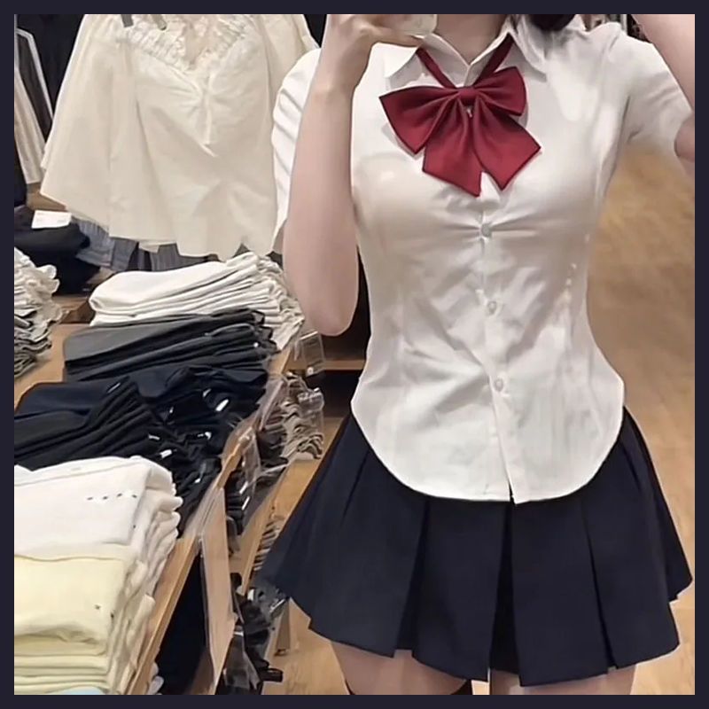| nameOriginal | Tight Waist Shirt JK Uniform Pure Sweet and Spicy Japanese College Style Bubble Sleeve Niche All-match Slim-fit Short-sleeved Top |