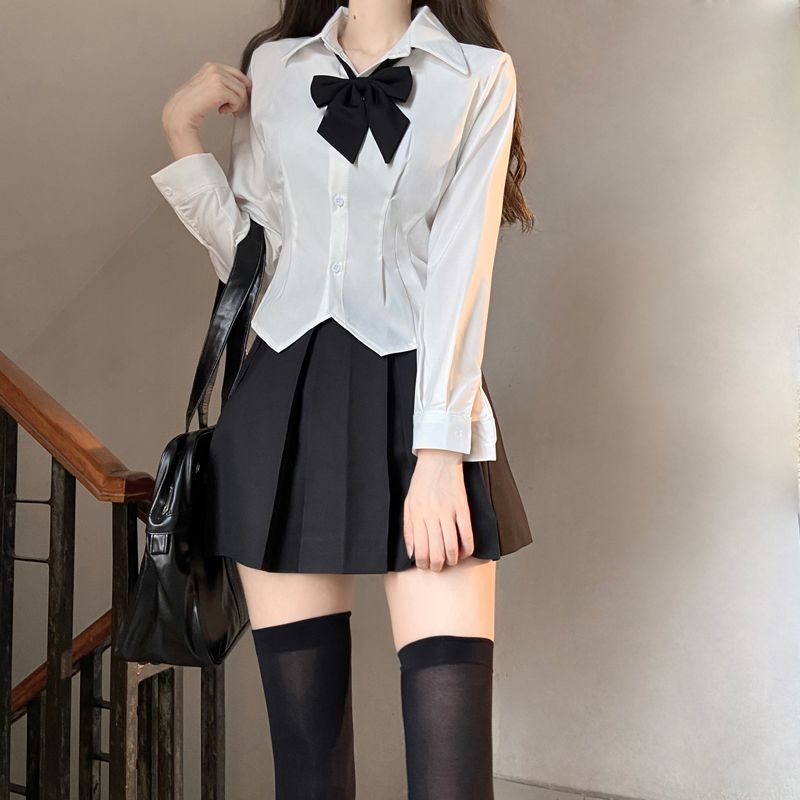 | nameOriginal | Tight Waist Shirt White Stretch Slim Shirt Grey Pure Desire Spice Style Uniform Pleated Skirt suit Women Summer |
