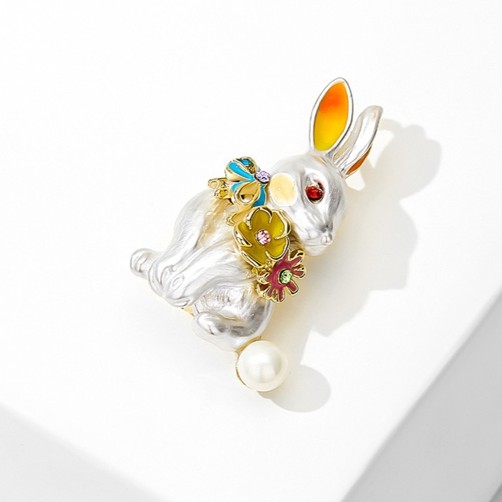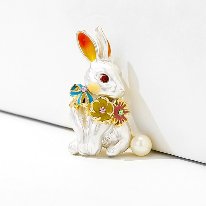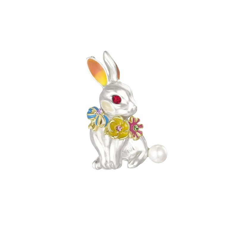 TikTok Explosions Mori Cute Rabbit Corsage Temperament Collar Pin Alloy Animal Fixed Brooch with Wholesale