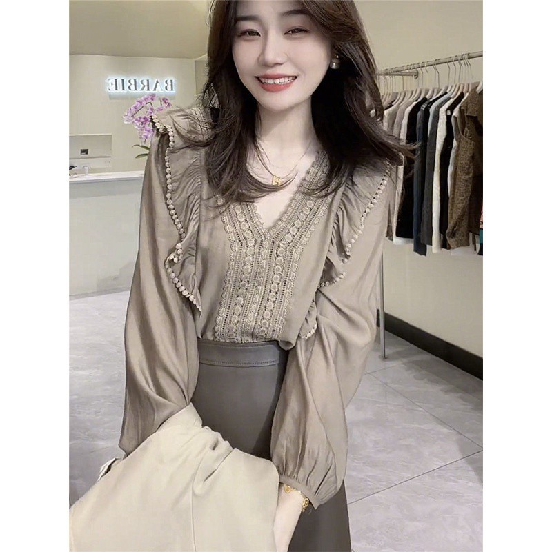 | nameOriginal | TikTok Explosions Spring Western Style Loose Stitching Lace Shirt Long Sleeve Collar Top Design Sense Slim Base Shirt |