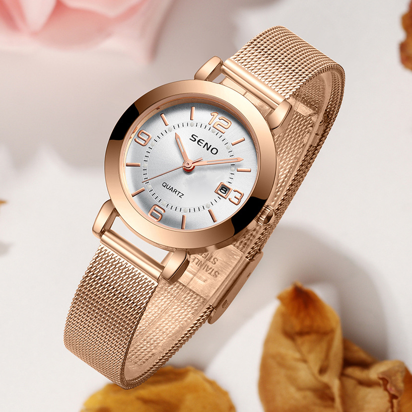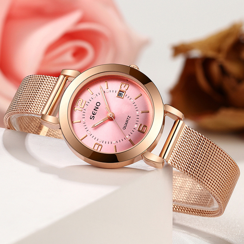 | nameOriginal | TikTok Express Live on behalf of Milan Steel Belt Calendar Luminous Women's Watch SENO Chennuo Net Red New Waterproof Watch |
