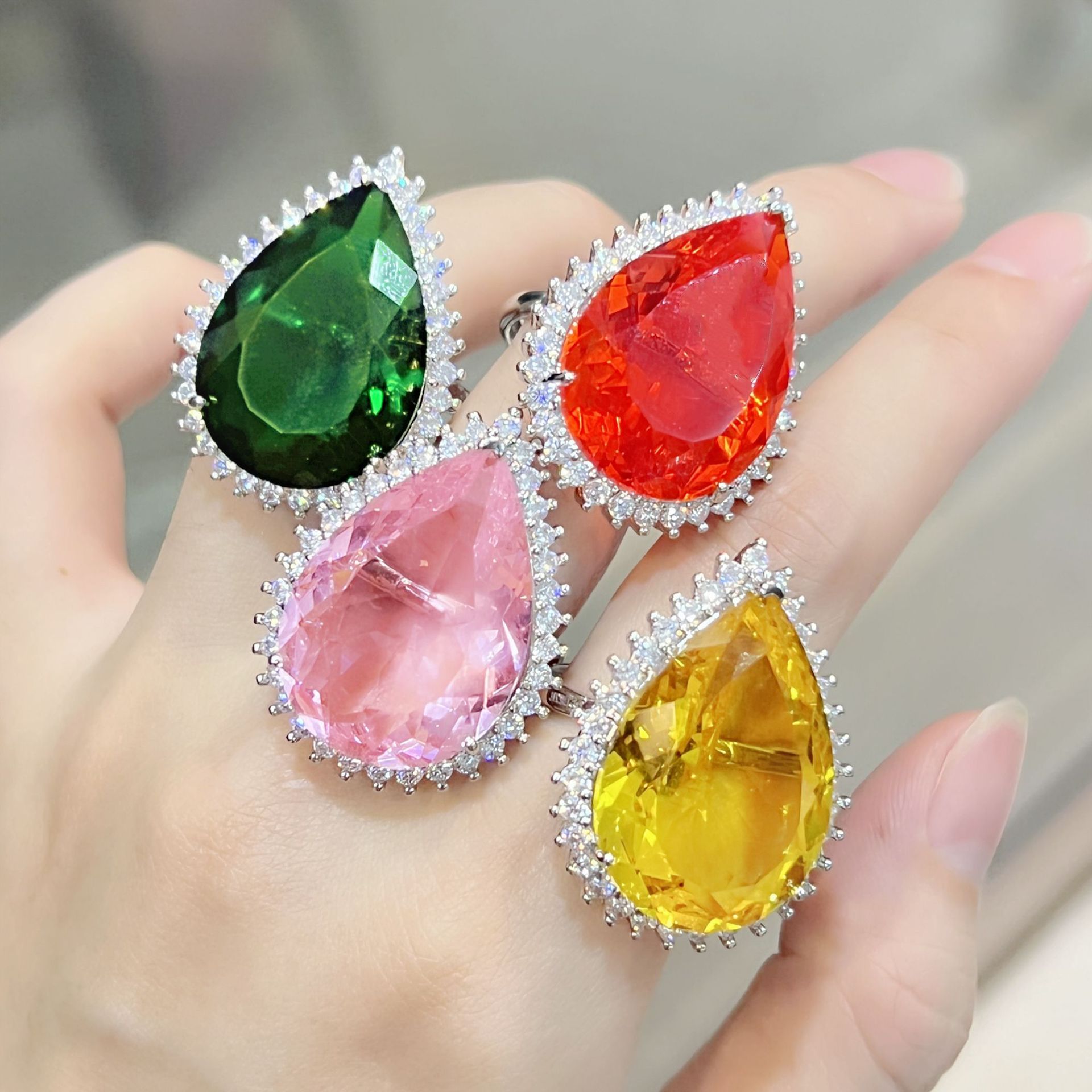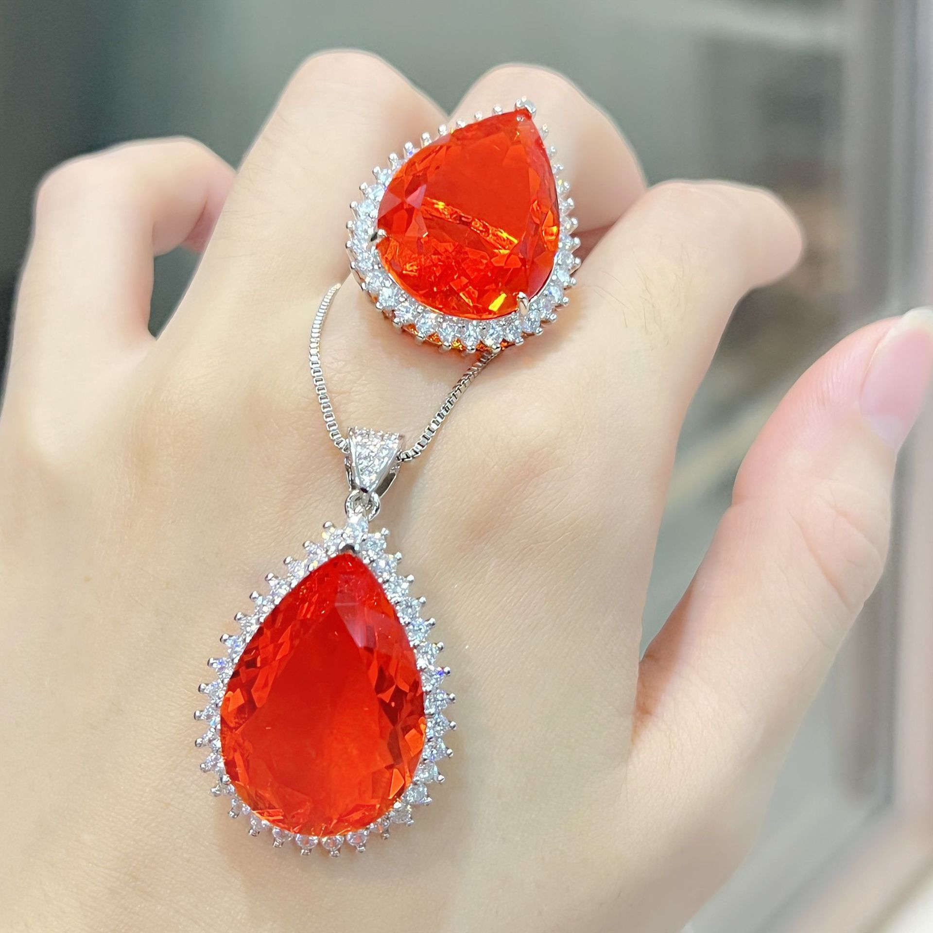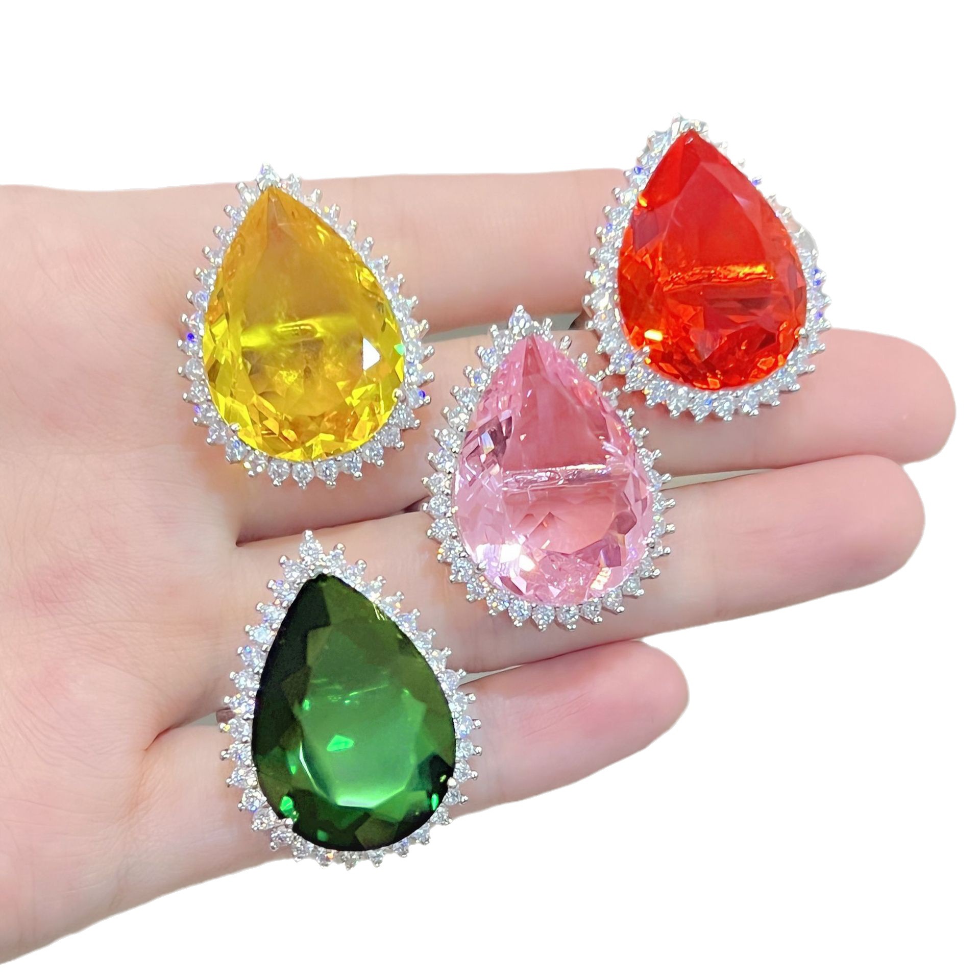 | nameOriginal | Tiktok fast hand live broadcast plated 18k platinum inlaid drop-shaped Bird's Nest spiral car flower colored diamond ring pendant necklace |