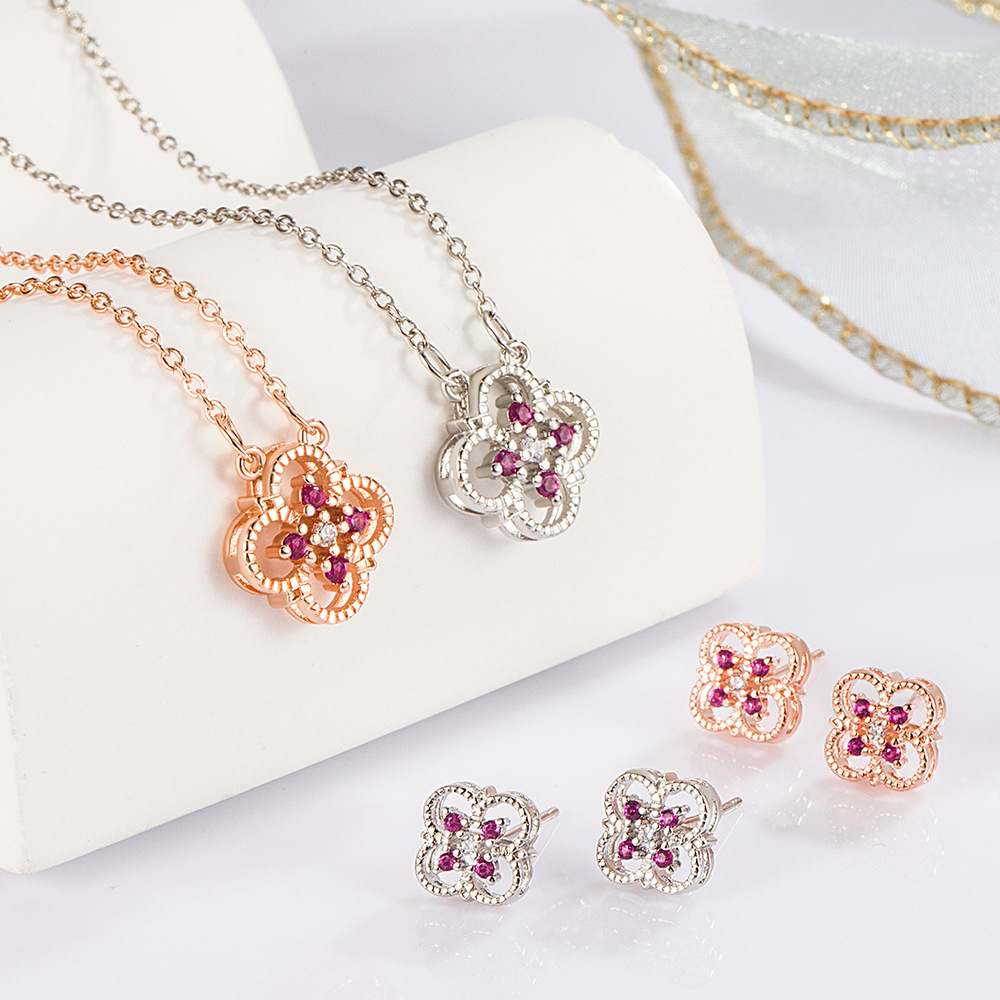 | nameOriginal | Tiktok hot sale New Micro-inlaid rose red clover necklace earrings suit ins Internet celebrity clavicle chain accessories |