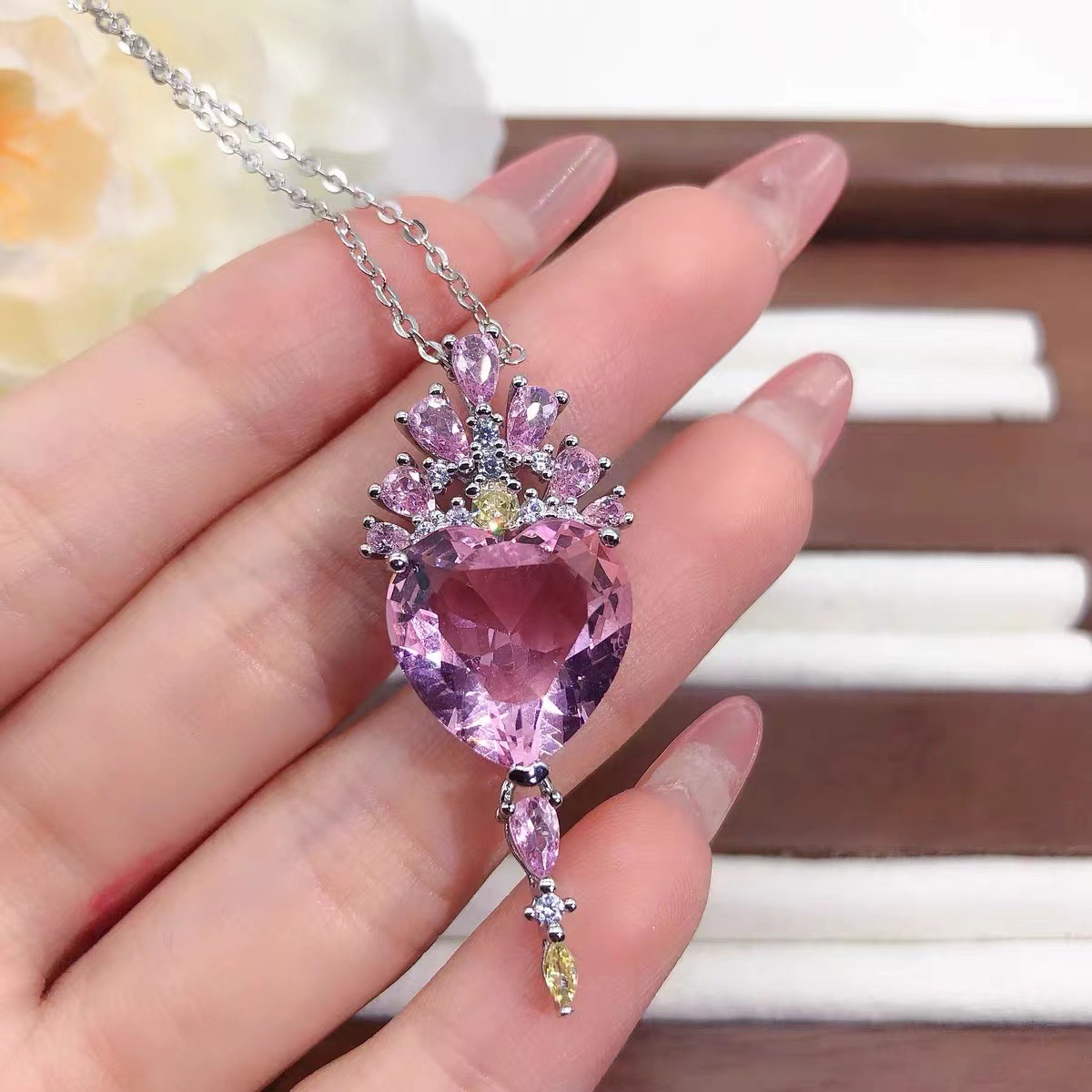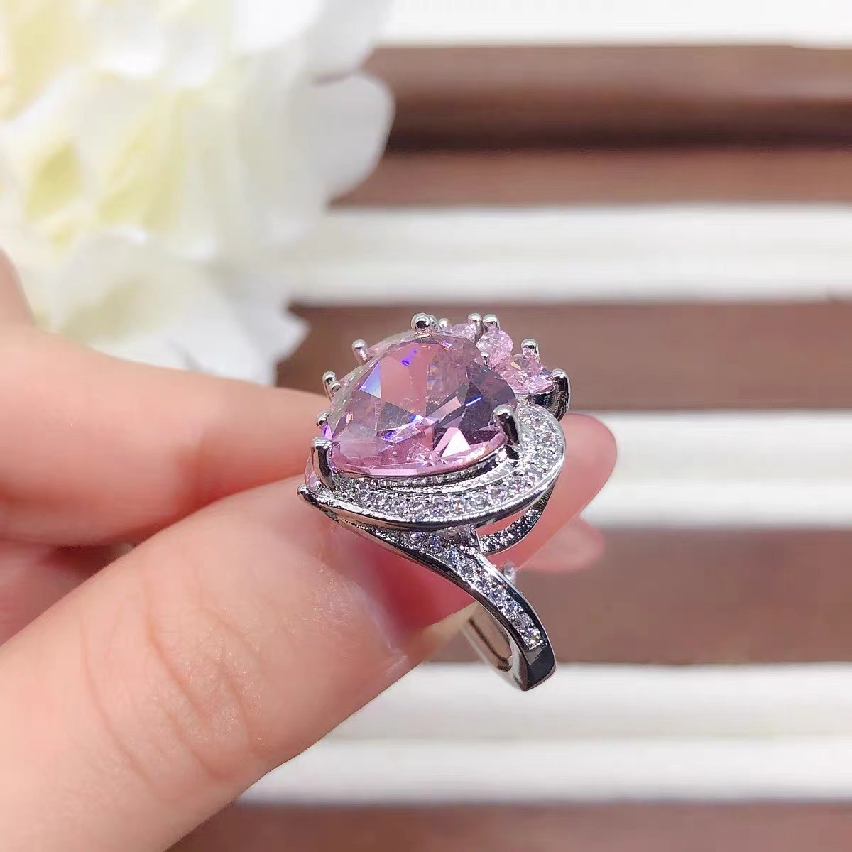 | nameOriginal | TikTok Internet Celebrity Same Style Heart-Shaped Morgan Gem Necklace Pendant Women's Light Luxury Brilliant Diamond Powder Heart Ring Jewelry |
