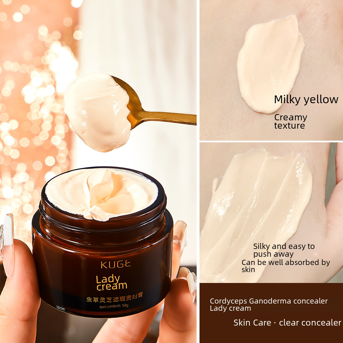 Tiktok Kuaishou popular live broadcast cool grid Cordyceps Ganoderma concealer Lady cream clear water moisturizing moisturizing cream plain face cream