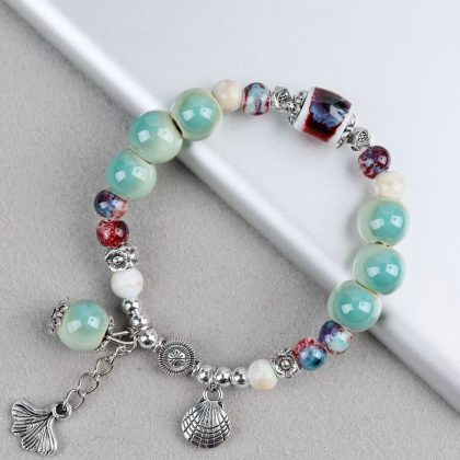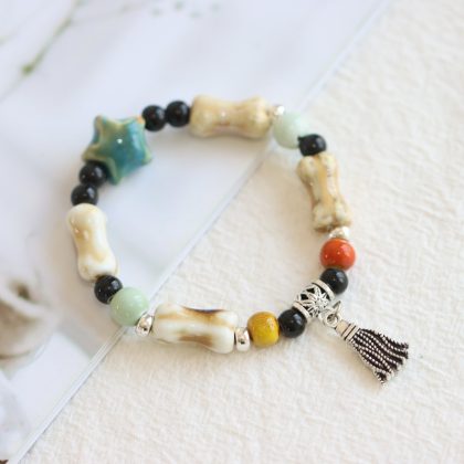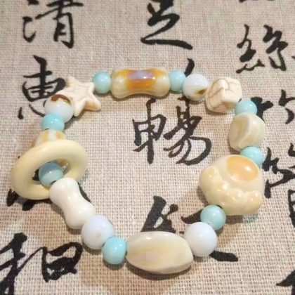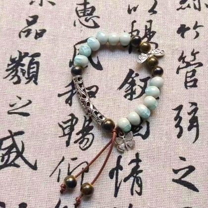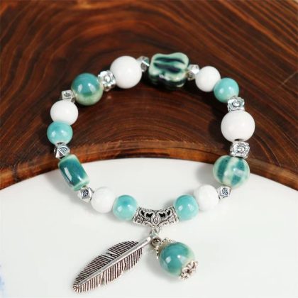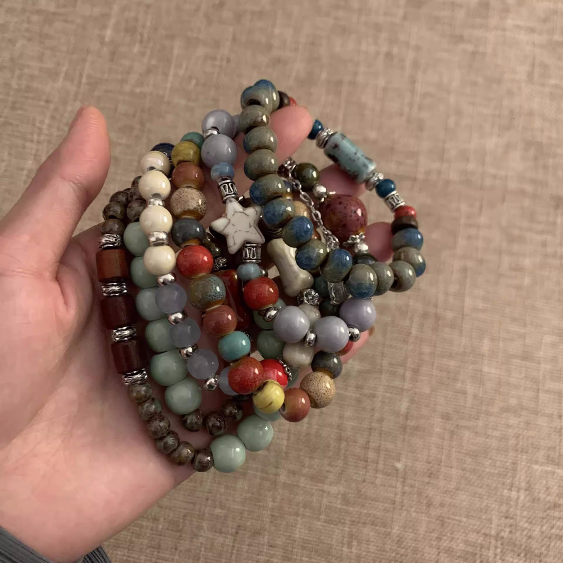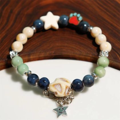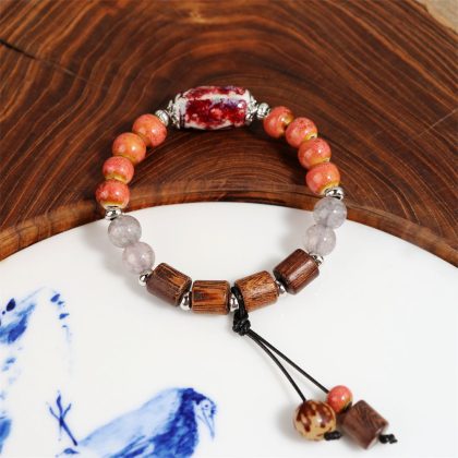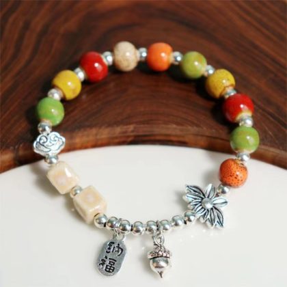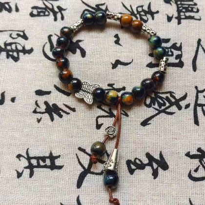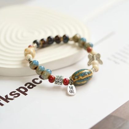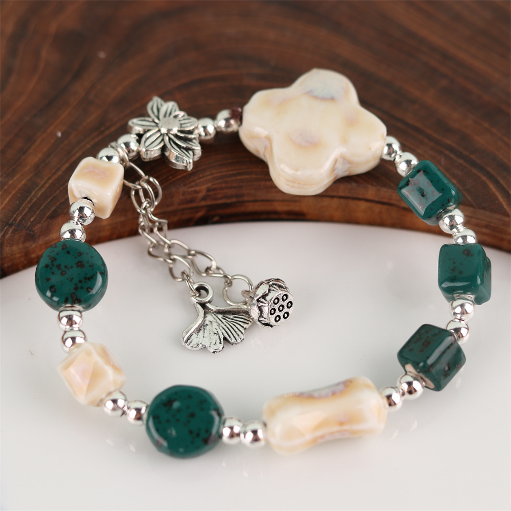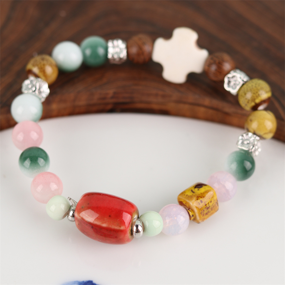 TikTok Little Red Riding Book Ceramic Bracelet National Style Artistic Handmade Single Circle Bracelet National Style Retro Bracelet Live Supply