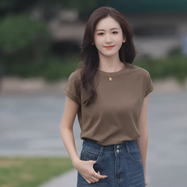| nameOriginal | Tiktok live broadcast flying sleeve t-shirt women's round neck thread small flying sleeve casual all-match loose short sleeve round neck top women |