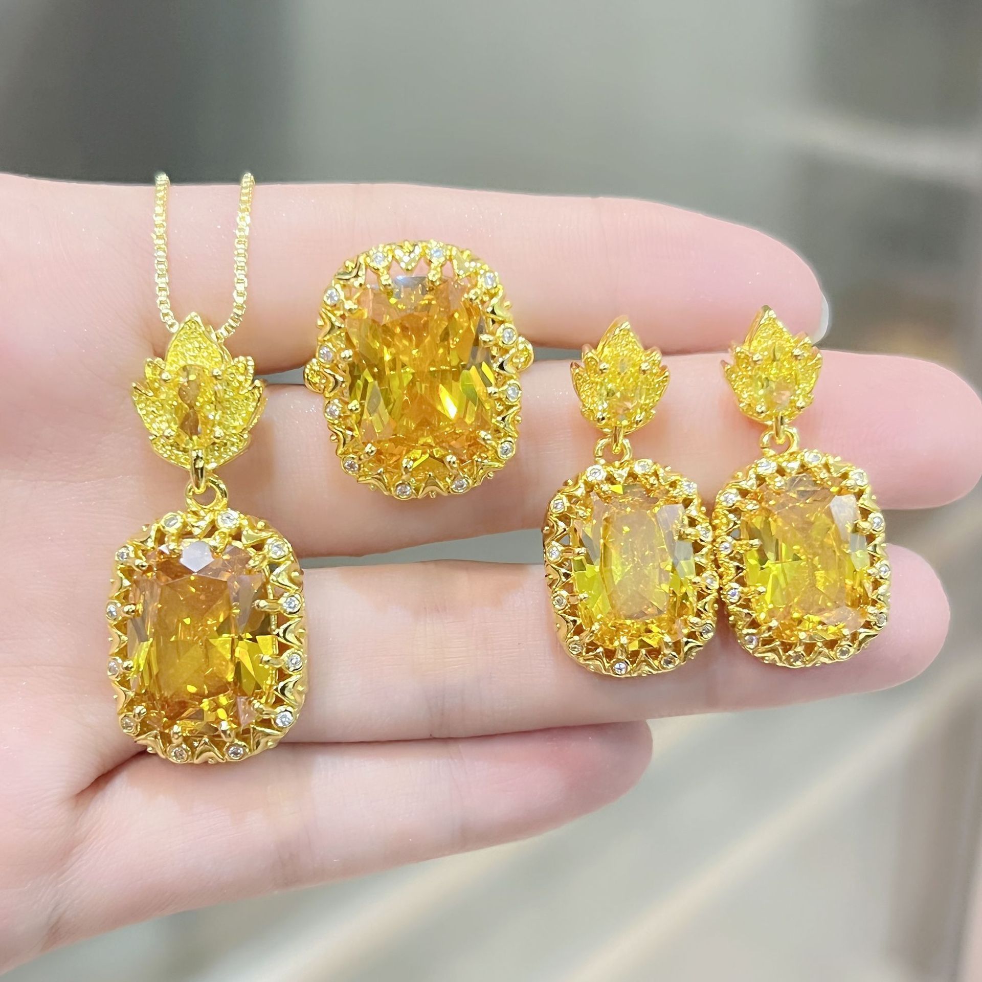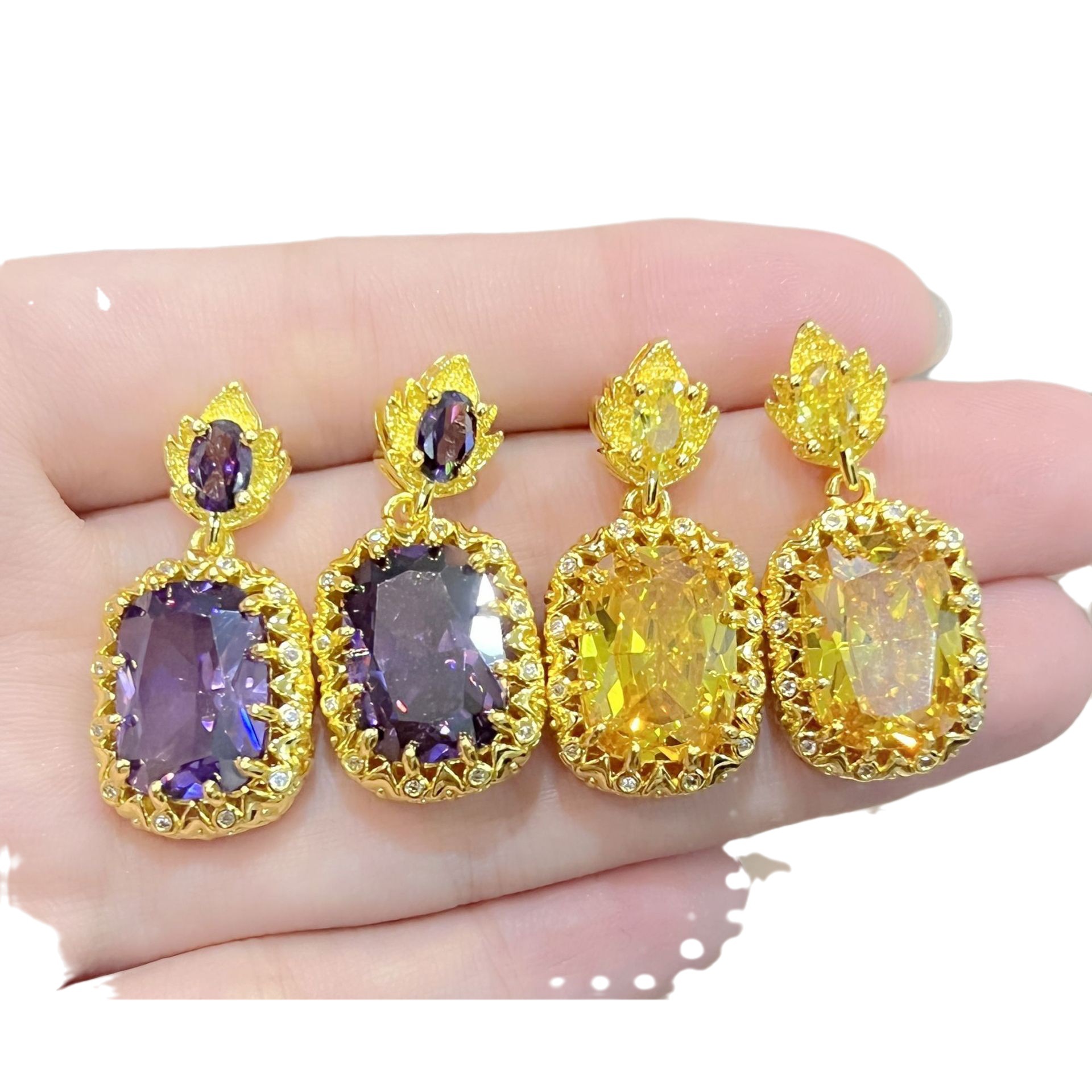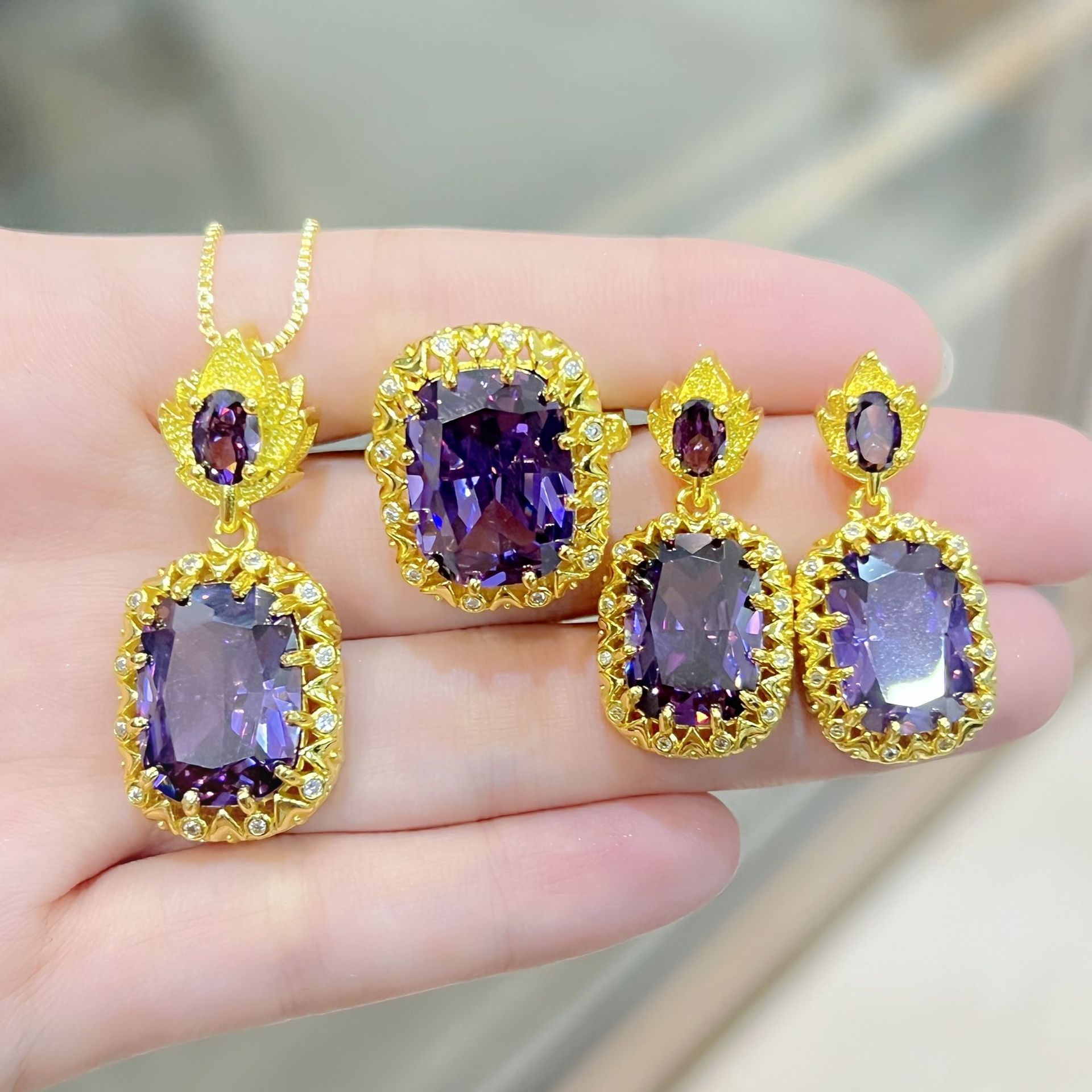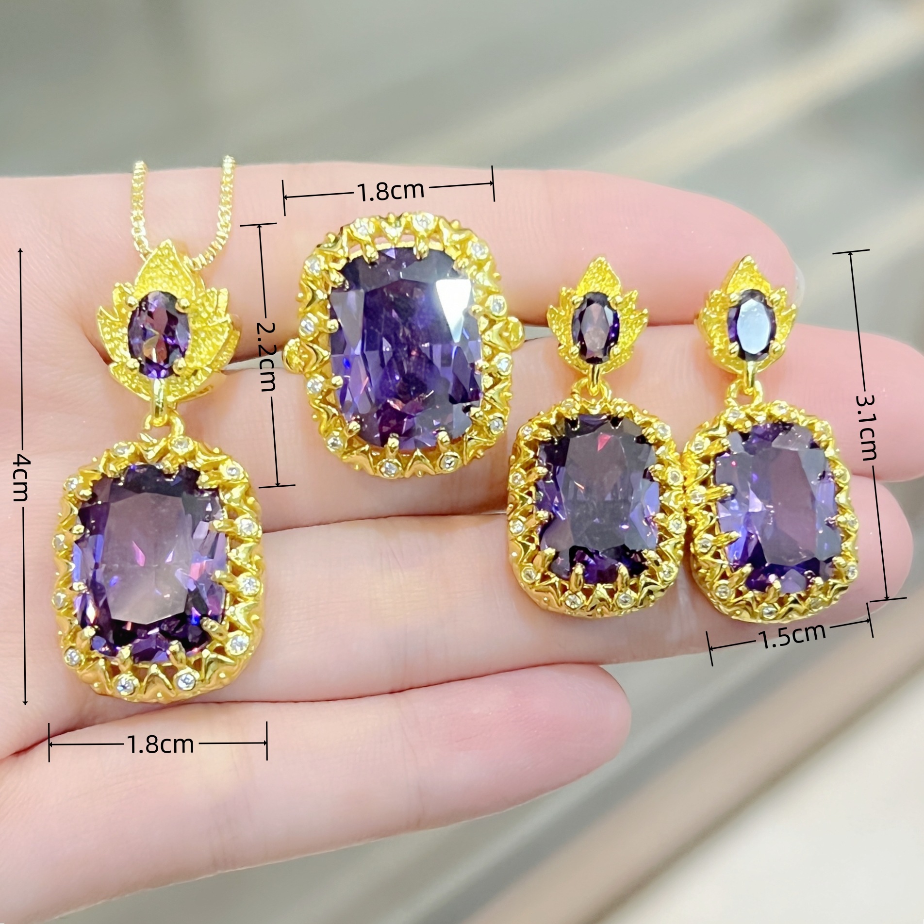 | nameOriginal | Tiktok live broadcast gold plated flame rectangular diamond zircon purple diamond yellow diamond ring earrings pendant necklace jewelry suit |