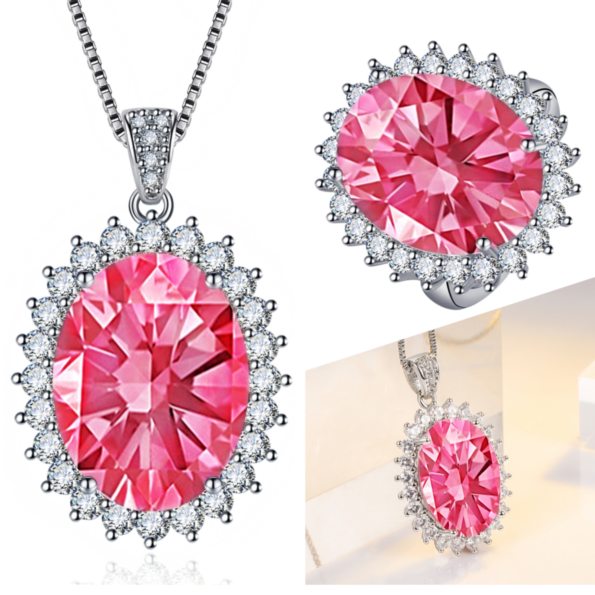 | nameOriginal | TikTok Live Broadcast Hot Color Treasure Pendant Necklace Ring High-end Super Popular Oval Red Pink Jewelry Set |