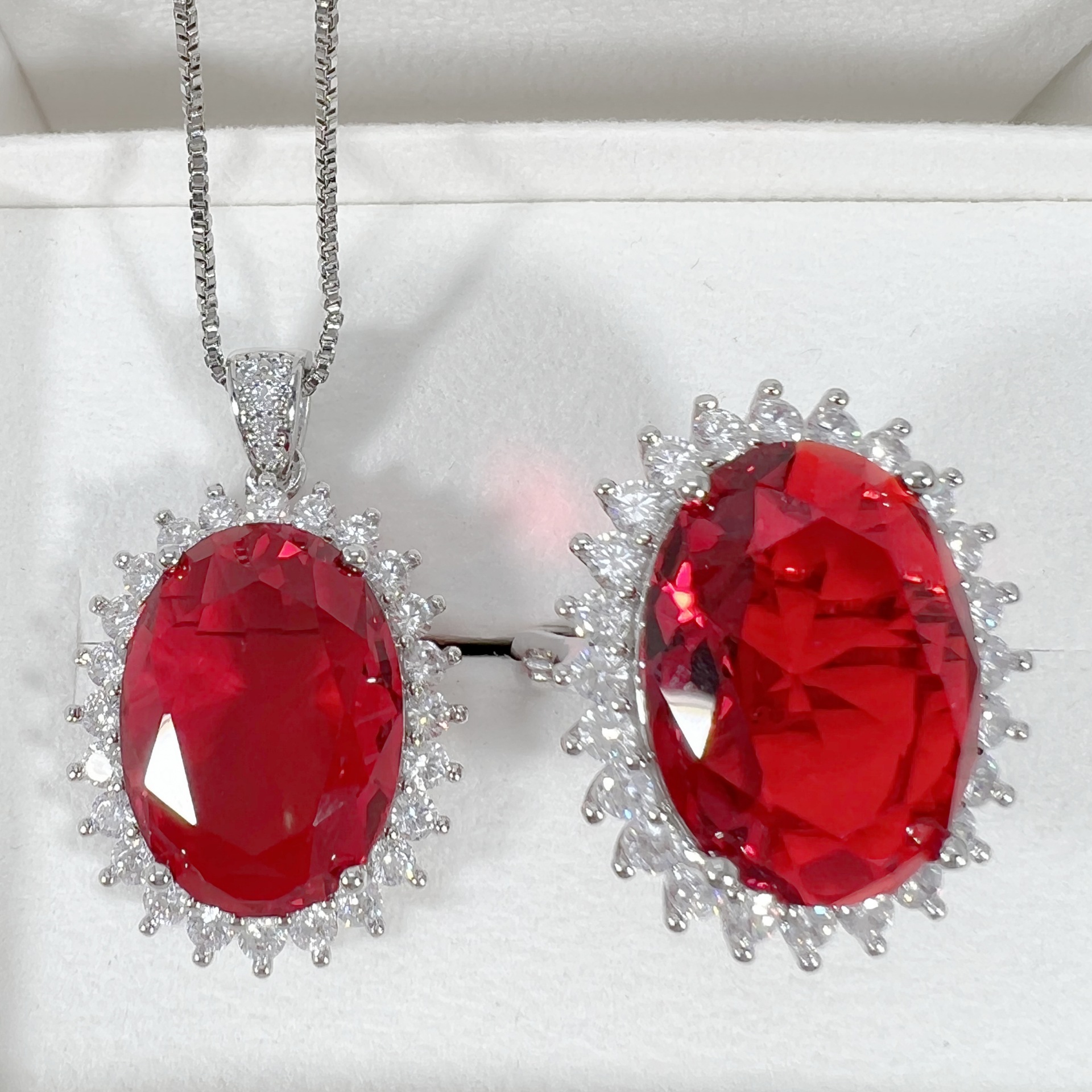 | nameOriginal | TikTok Live Broadcast Hot Color Treasure Pendant Necklace Ring High-end Super Popular Oval Red Pink Jewelry Set |