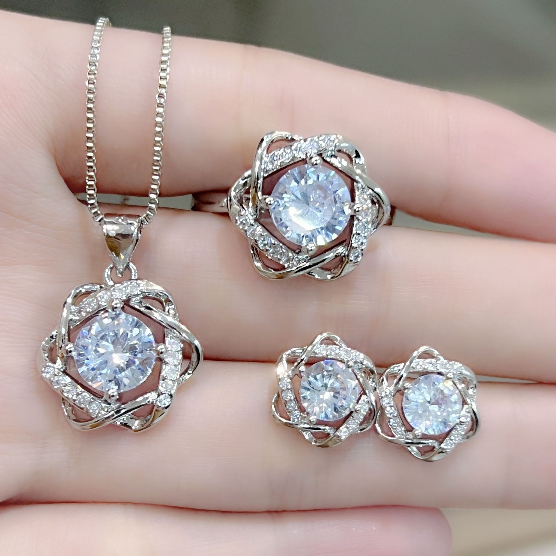 | nameOriginal | Tiktok live full diamond six-pointed star ring earrings pendant necklace 18K gold rotating windmill diamond ring jewelry suit |