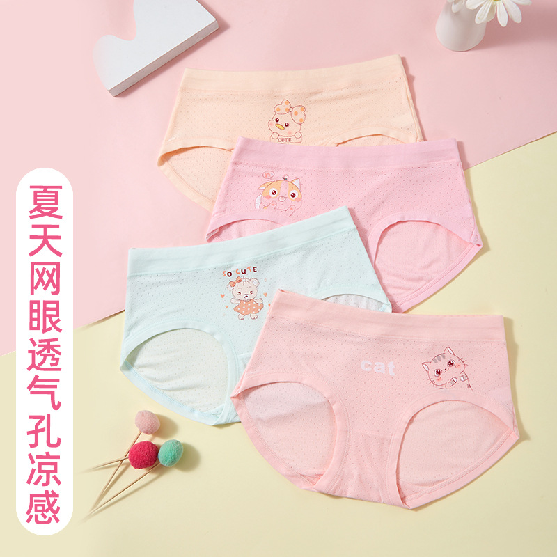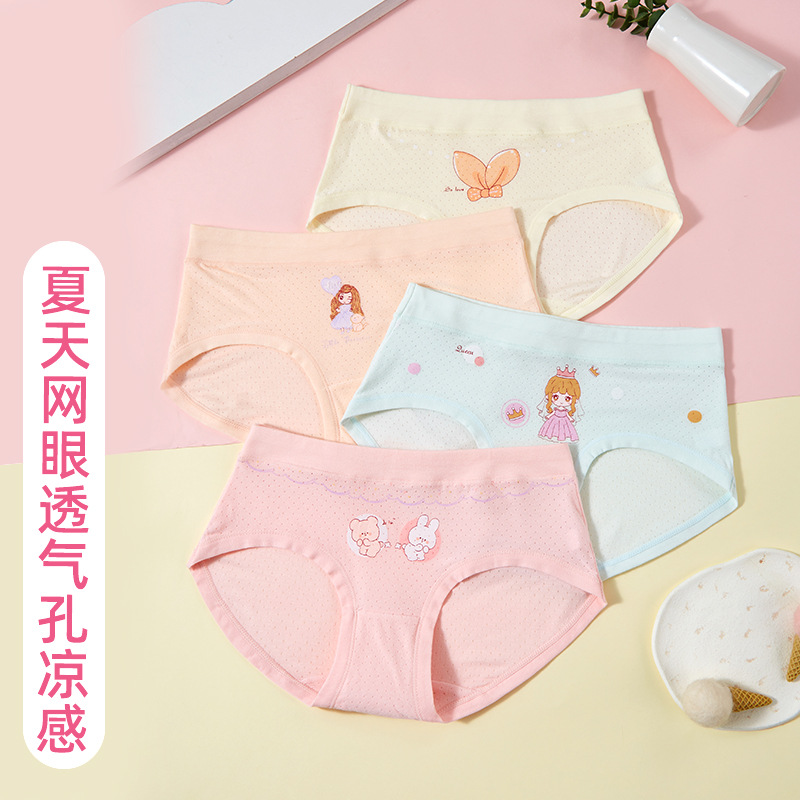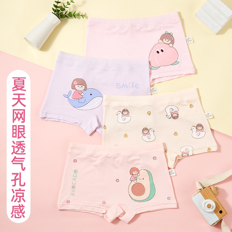 Tiktok popular children's underwear middle and small children girls' triangle four-corner mesh antibacterial boneless crotch four-corner boxer