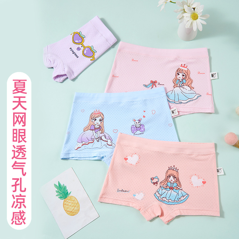 Tiktok popular children’s underwear middle and small children girls’ triangle four-corner mesh antibacterial boneless crotch four-corner boxer