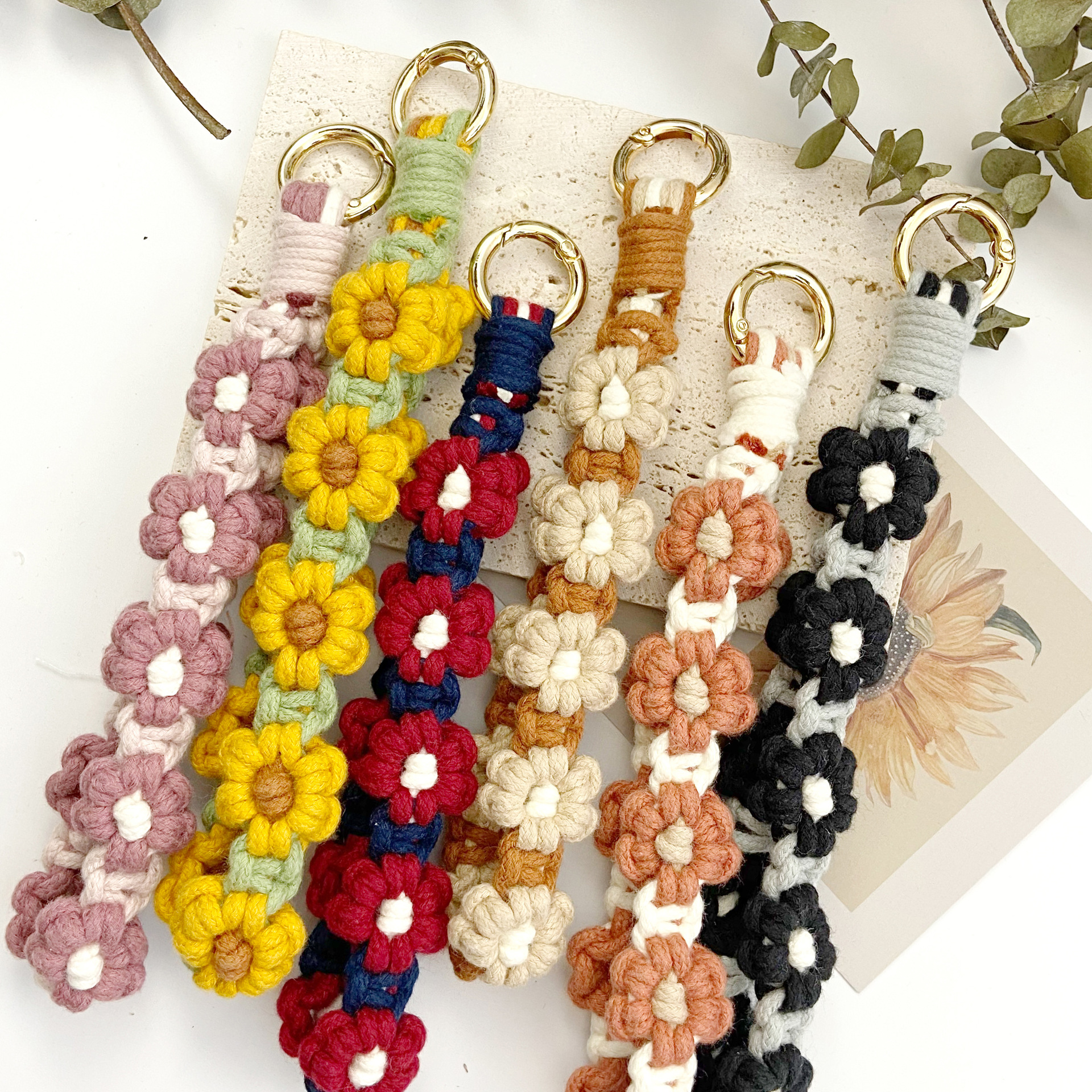 | nameOriginal | Tiktok popular hand-woven Daisy keychain pendant bohemian Nordic style wrist strap key ring |