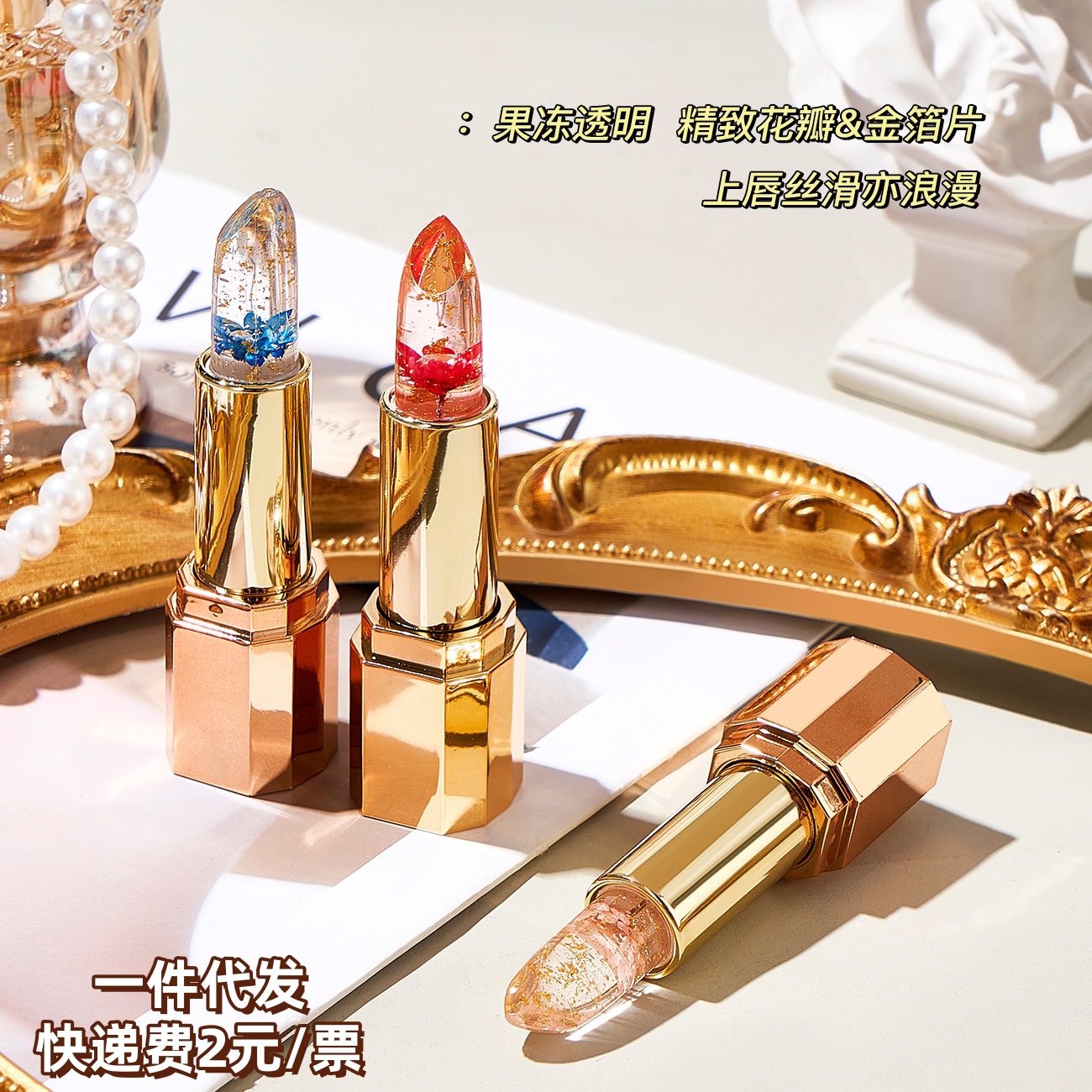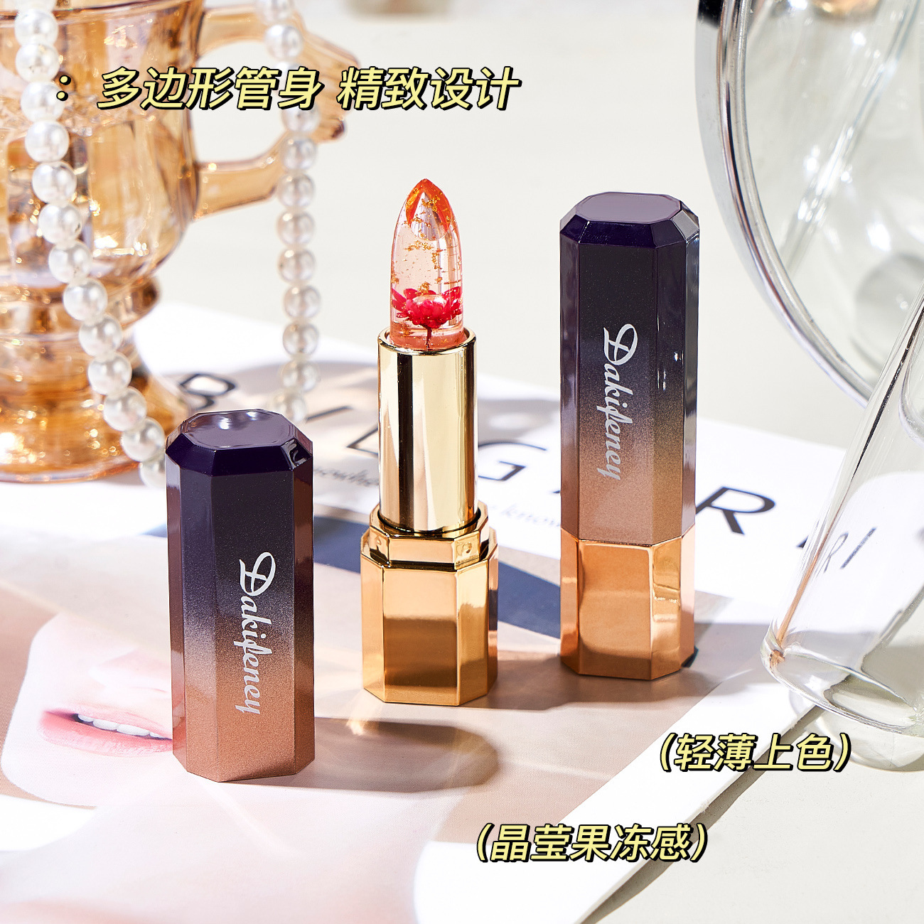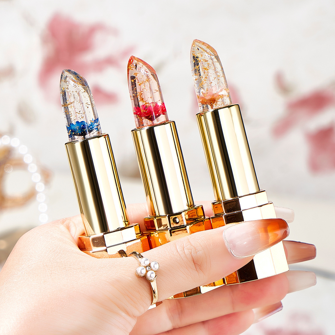 | nameOriginal | Tiktok same petal flower lipstick transparent jelly color-changing gold foil temperature-changing lipstick non-stick cup non-fading lipstick |