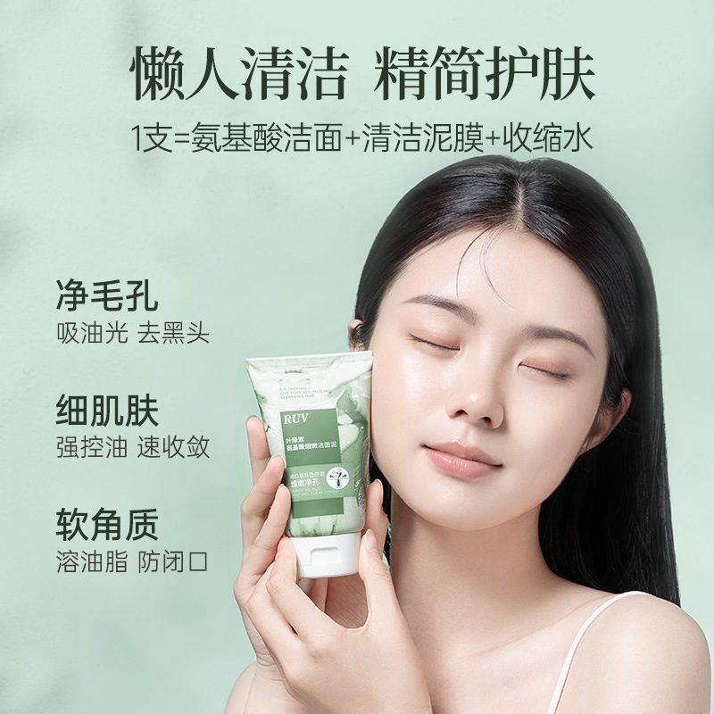 | nameOriginal | Tiktok same RUV chlorophyll amino acid facial cleanser deep cleansing blackhead removing shrink pore cleanser |
